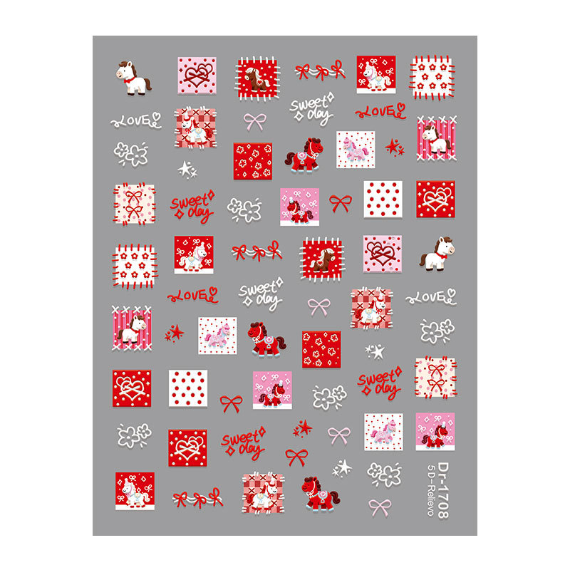 Redanco5D浮雕ins爆款卡通美甲贴纸可爱小马立体指甲贴饰品He1708