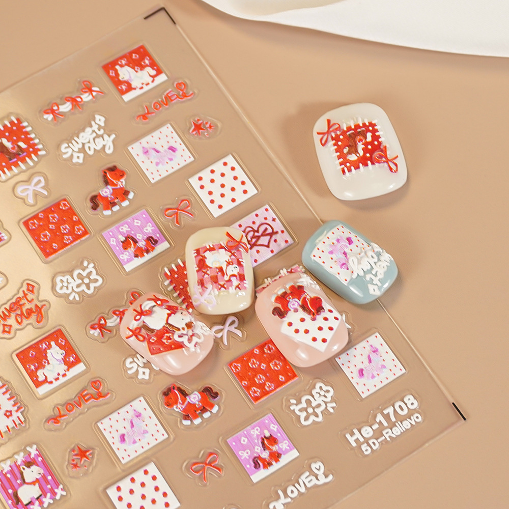 Redanco5D浮雕ins网红卡通美甲贴纸新春马年大吉立体指甲贴He1609