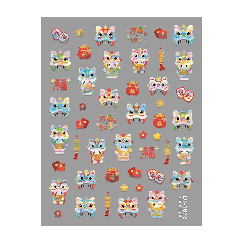 Redanco5D浮雕ins爆款贝壳光美甲贴纸新年兽醒狮立体指甲贴Dr1678