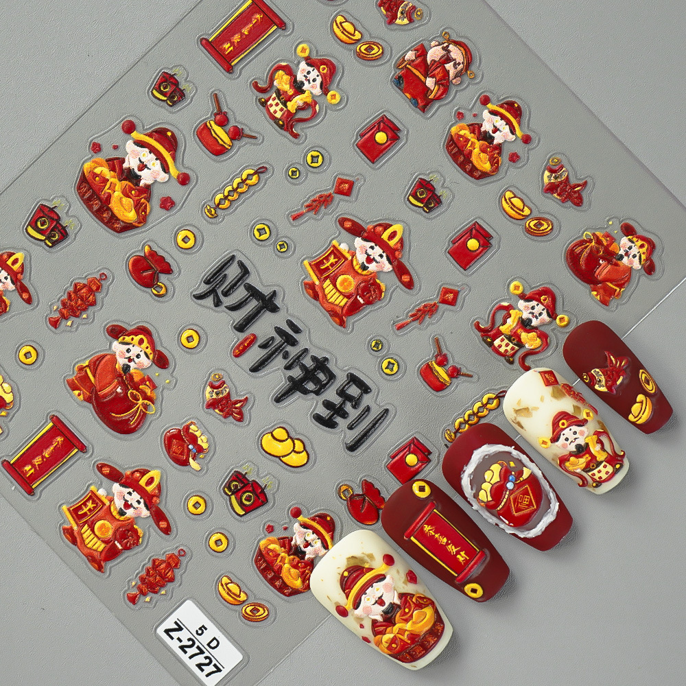 Redanco新品5Dレリーフインスタ风新年大吉財神爷ネイルシール立体爪ステッカーZ-2727