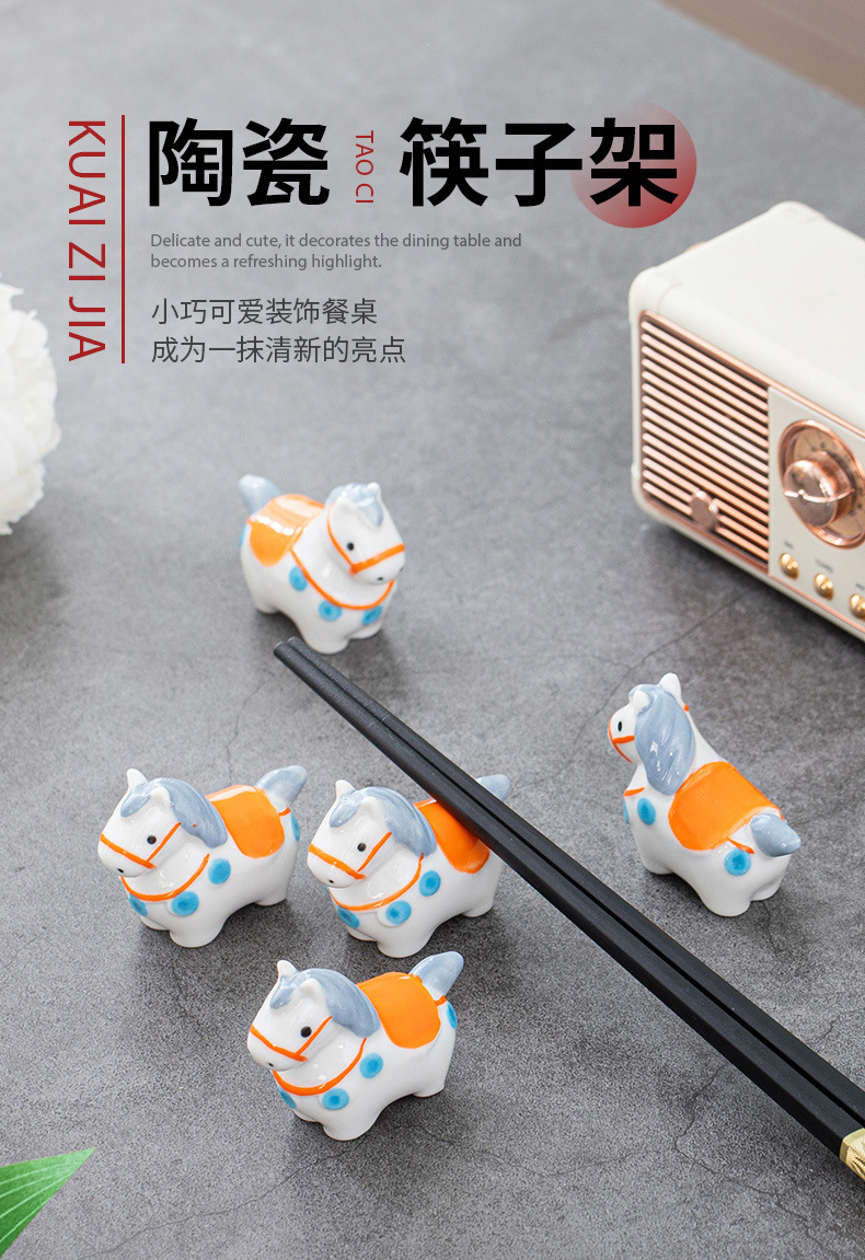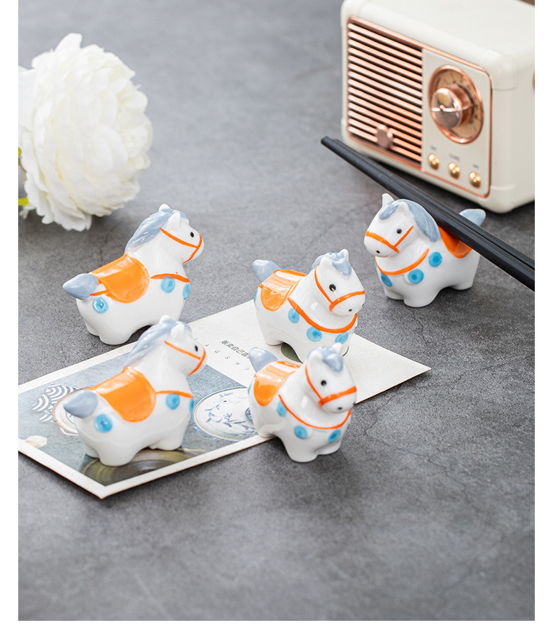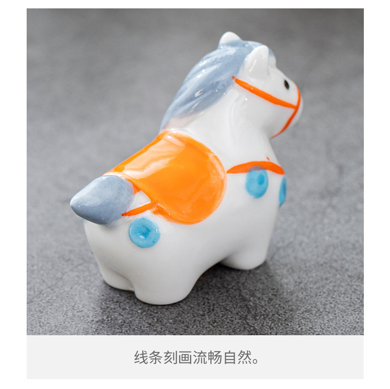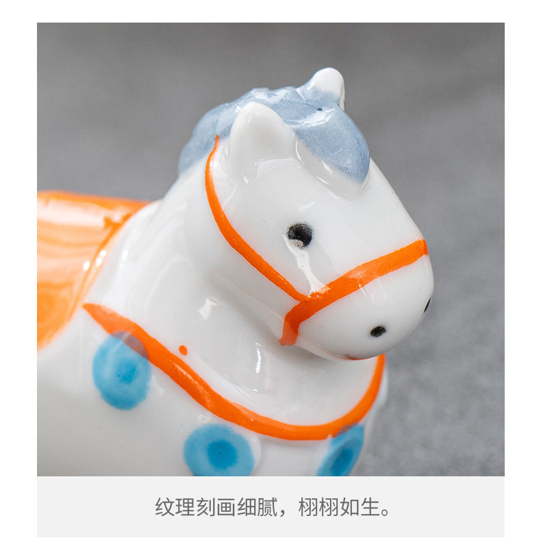 中式生肖小马马年唐朝马创意礼品陶瓷筷架动物陶瓷转转工位摆件