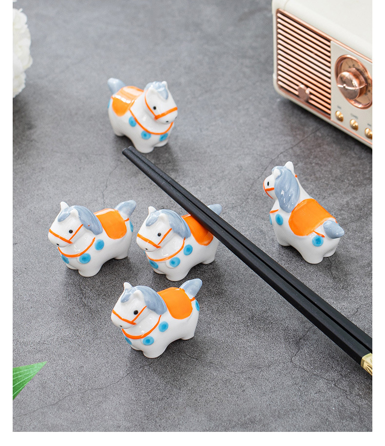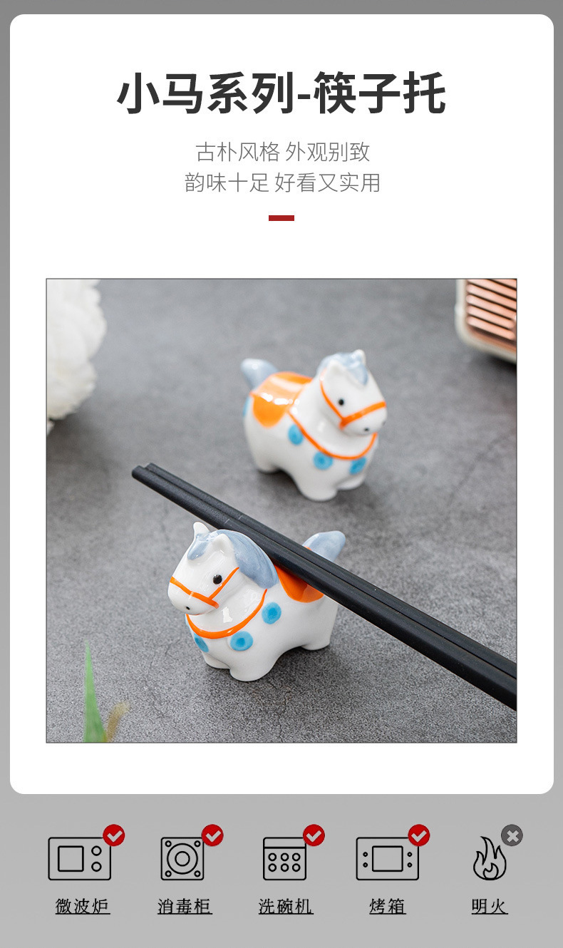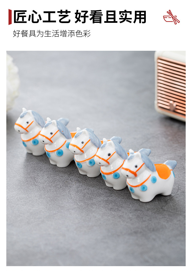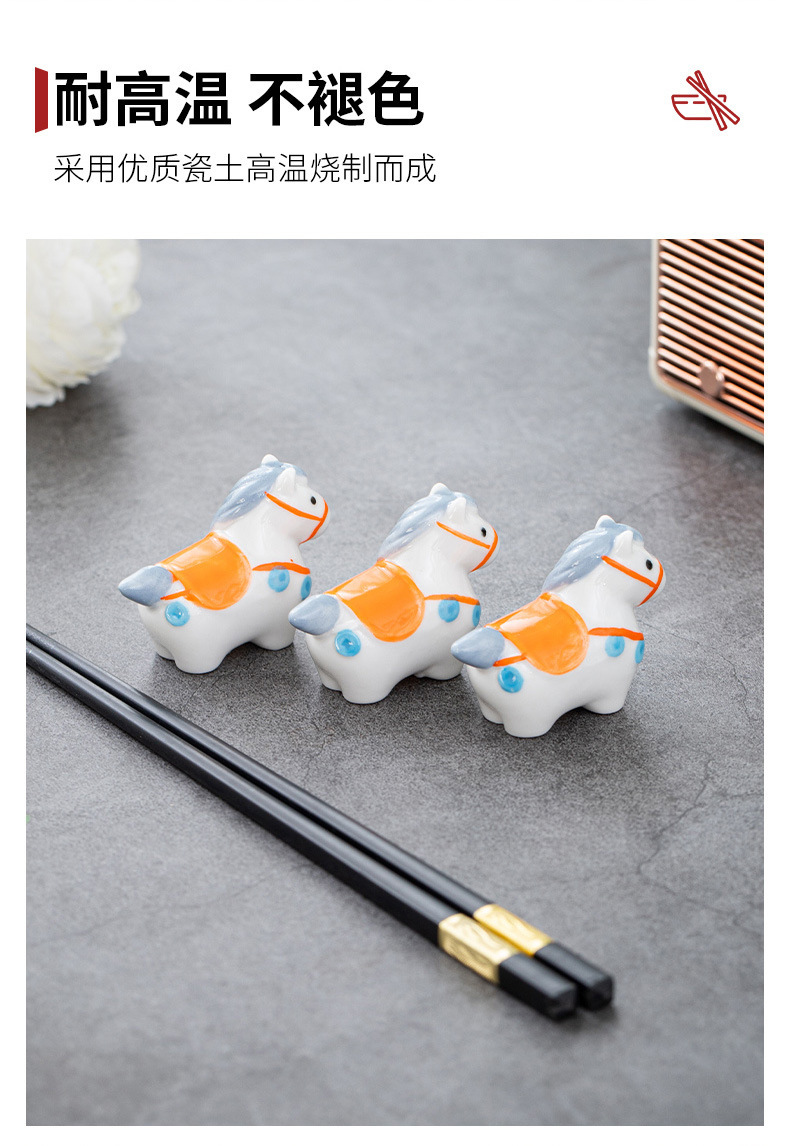 中式生肖小马马年唐朝马创意礼品陶瓷筷架动物陶瓷转转工位摆件