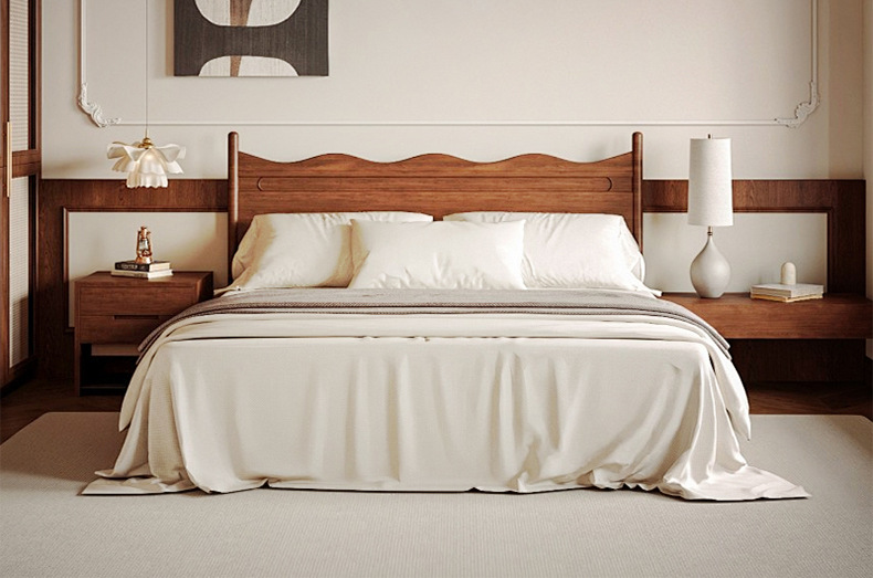 顾家中古风卧室吸顶灯实木侘寂风房间灯胡桃木色护眼书房灯具357L