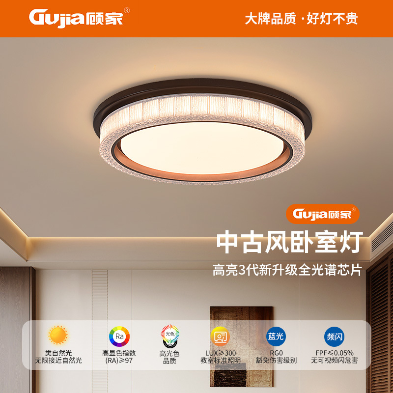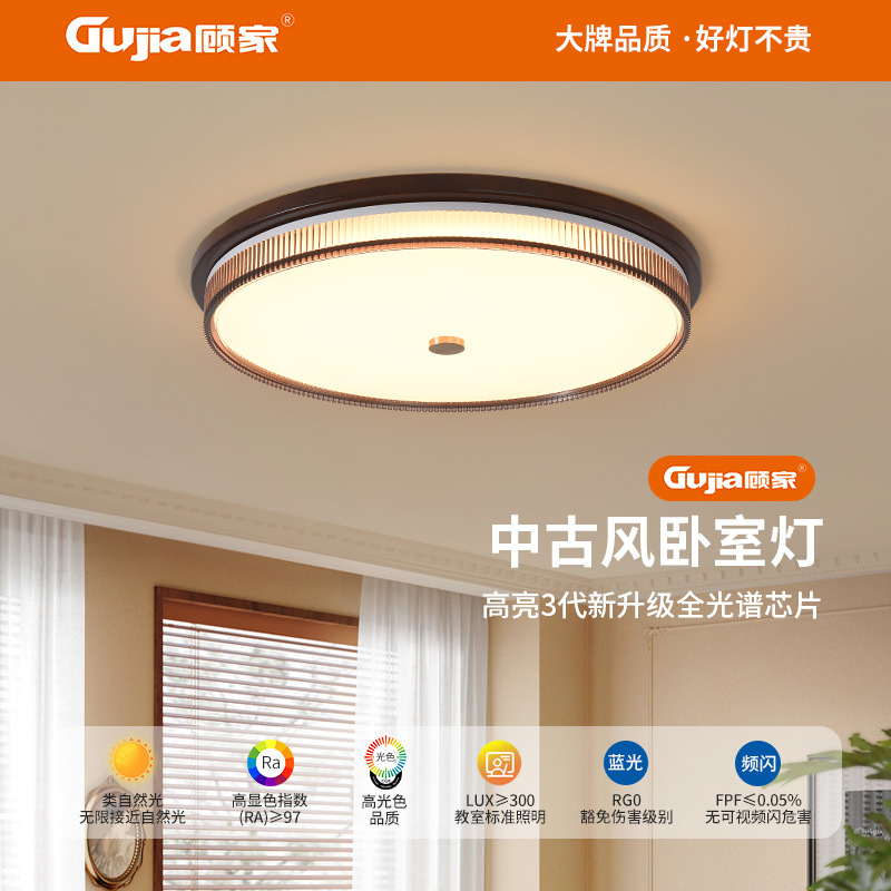 顾家美式复古卧室灯轻奢高级感吸顶灯中古风全光谱护眼书房灯357L