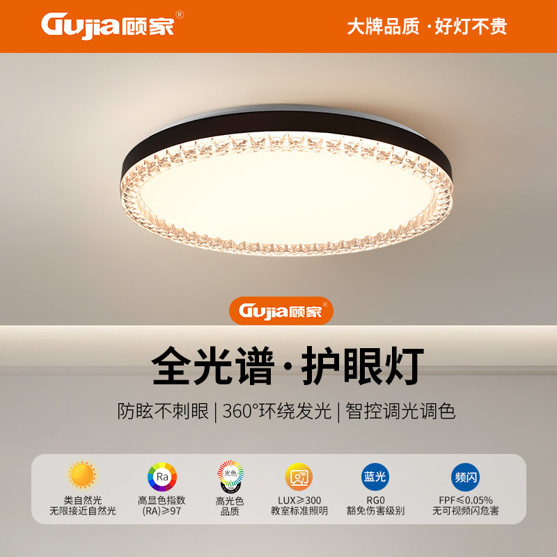 顾家卧室吸顶灯全光谱护眼轻奢高级感现代简约书房灯中山灯具357L