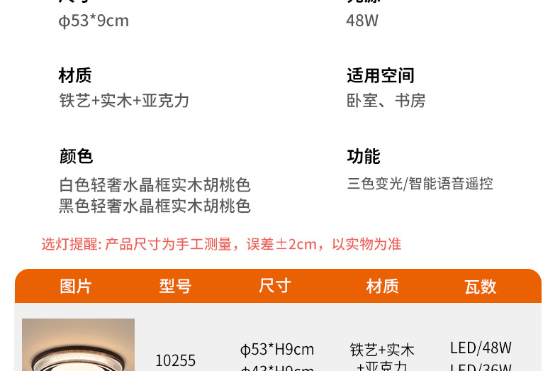 光源功率 43cm白色轻奢水晶框实木胡桃色-三色变光-36W-全光谱(顾家),43cm白色轻奢水晶框实木胡桃色-天猫无极-36W-全光谱(顾家),43cm黑色轻奢水晶框实木胡桃色-三色变光-36W-全光谱(顾家),43cm黑色轻奢水晶框实木胡桃色-天猫无极-36W-全光谱(顾家),53cm白色轻奢水晶框实木胡桃色-三色变光-48W-全光谱(顾家),53cm白色轻奢水晶框实木胡桃色-天猫无极-48W-全光谱(顾家),53cm黑色轻奢水晶框实木胡桃色-三色变光-48W-全光谱(顾家),53cm黑色轻奢水晶框实木胡桃色-天猫无极-48W-全光谱(顾家)