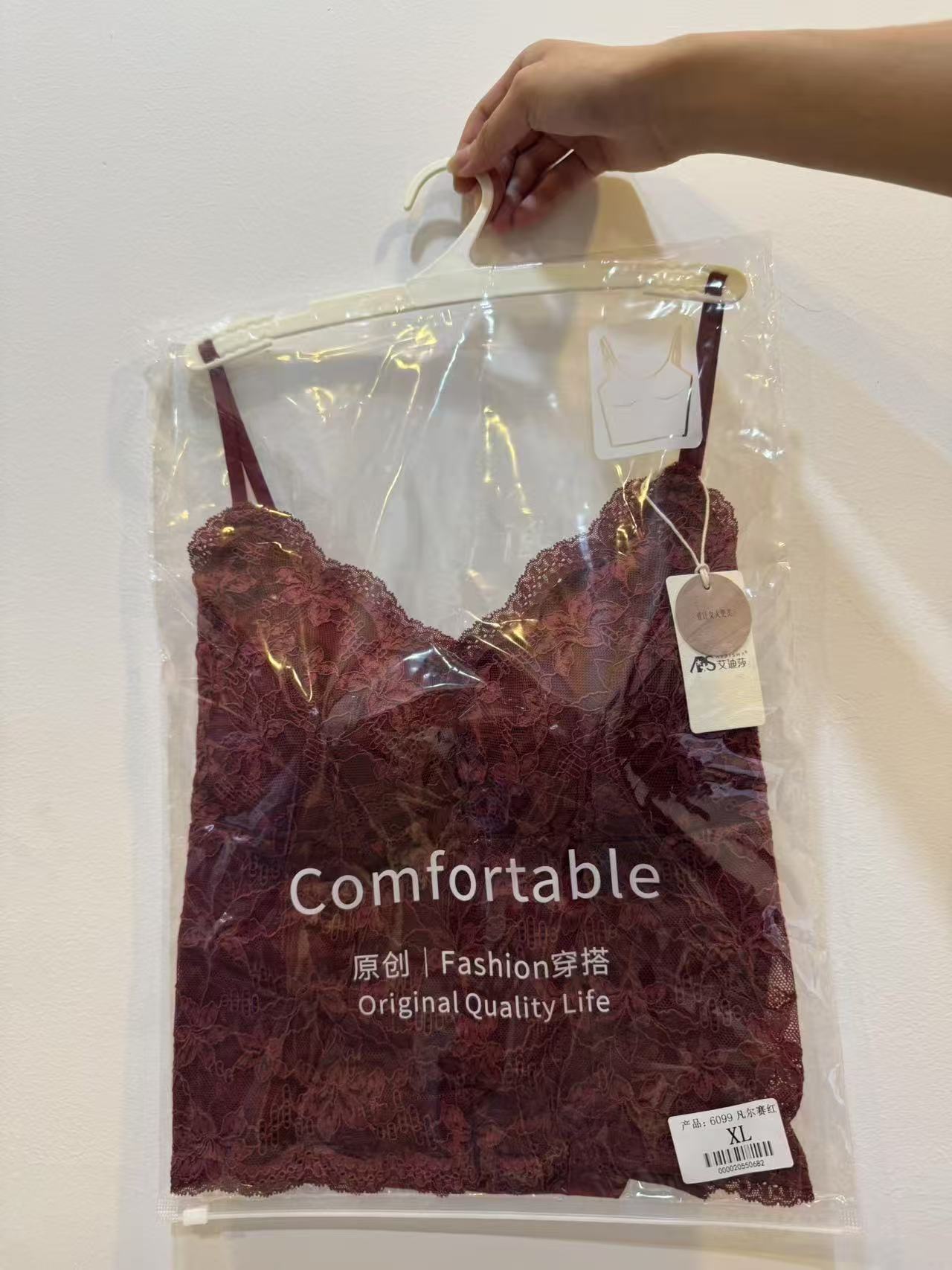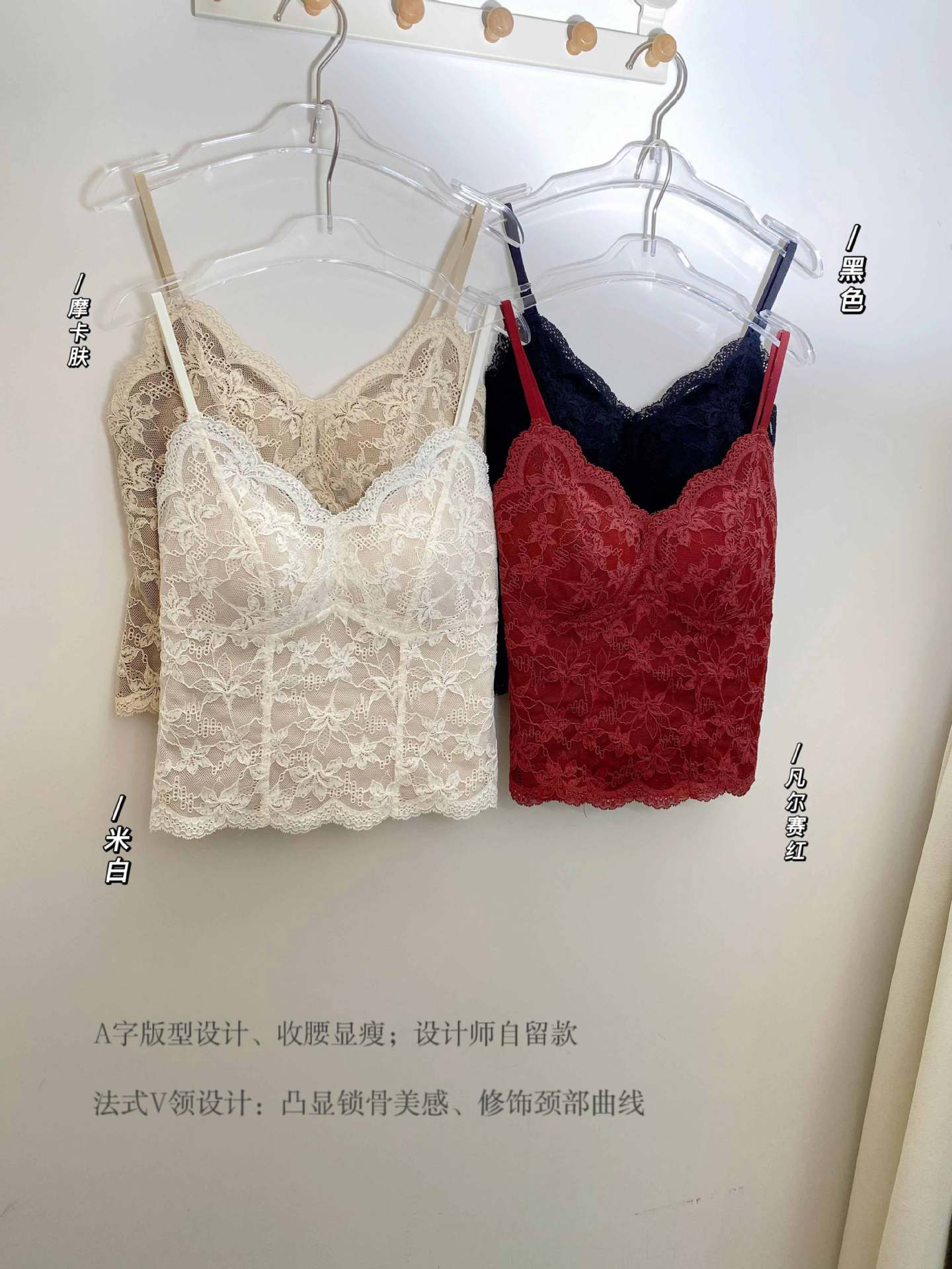 秋冬新款法式丝绒蕾丝边吊带背心k330修身显瘦文胸一体式美背内衣