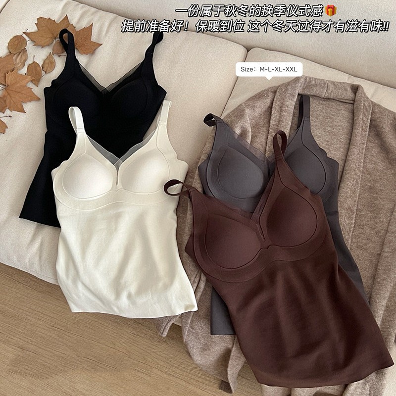 秋冬磨毛6607吊带版深V暖暖背心女蓄热暖绒保暖修身打底衫带胸垫