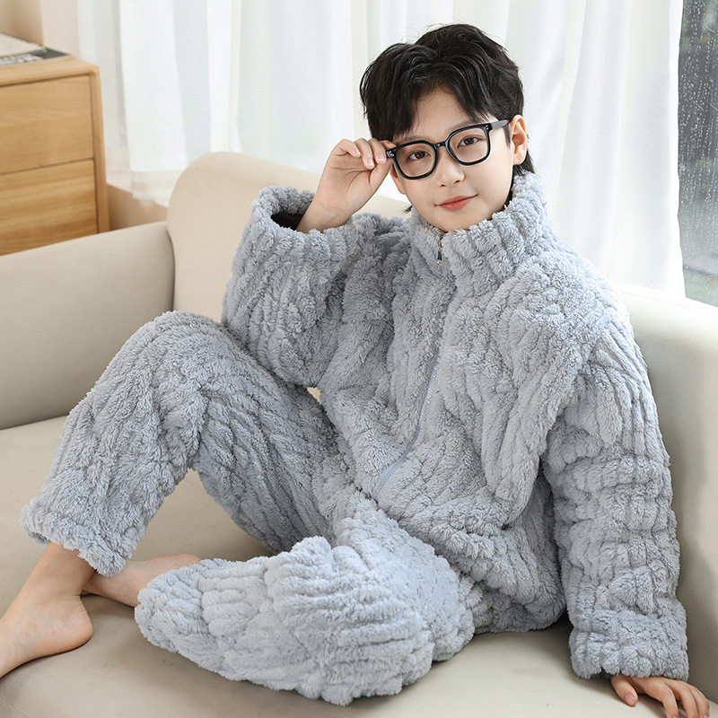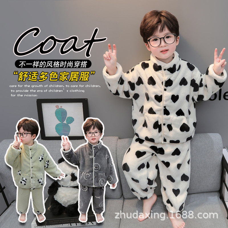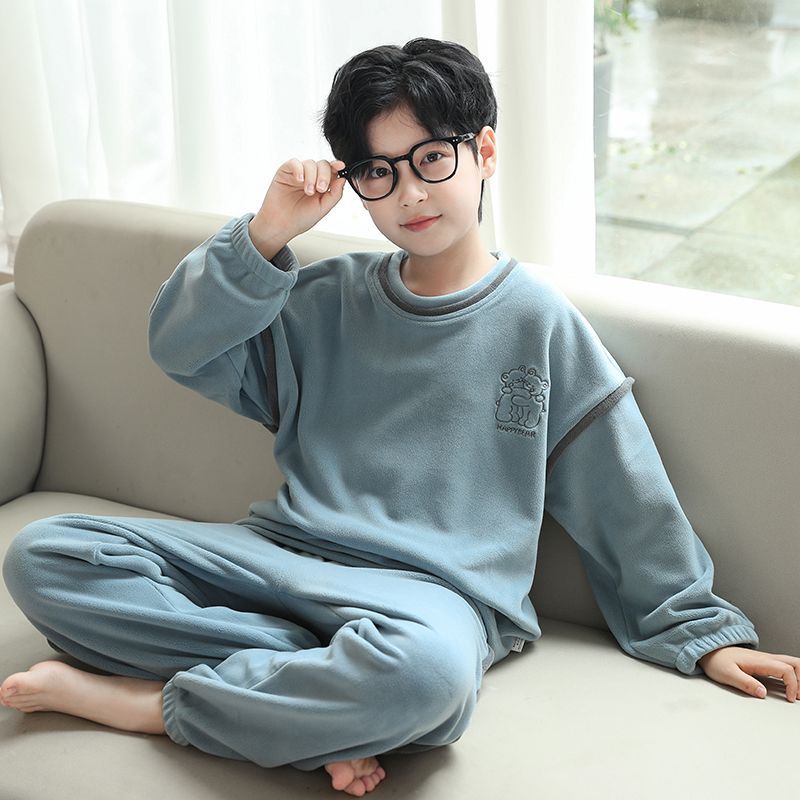 子供用パジャマ男の子フランネル秋冬保温家庭服中の子供の男の子は厚手でスーツとベルベットを着ている