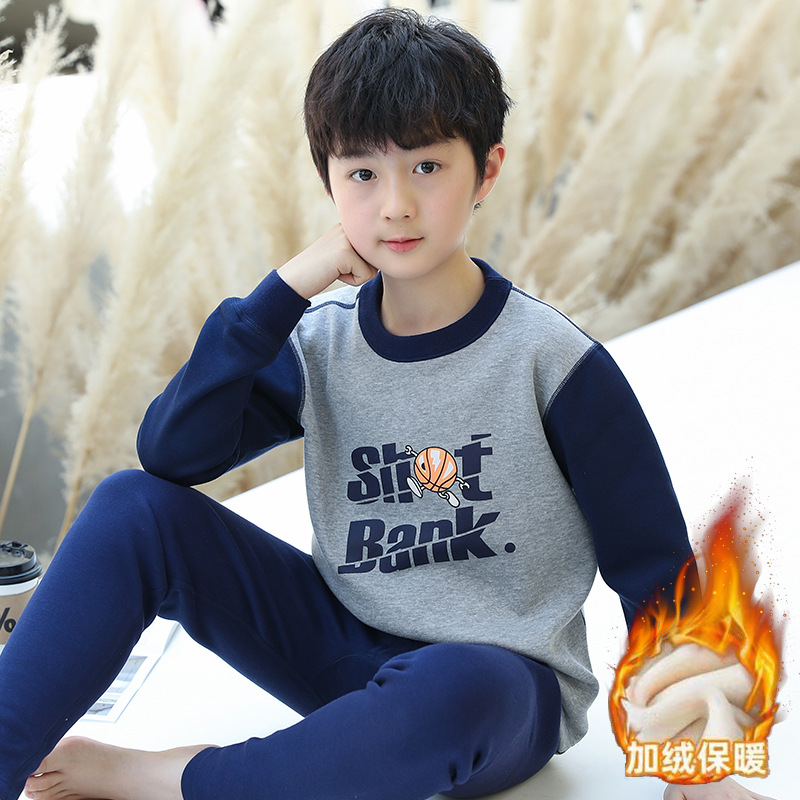 子供用骨なし下着セット男児秋衣秋ズボンにベルベット秋冬の下着中の大童男の子保温服
