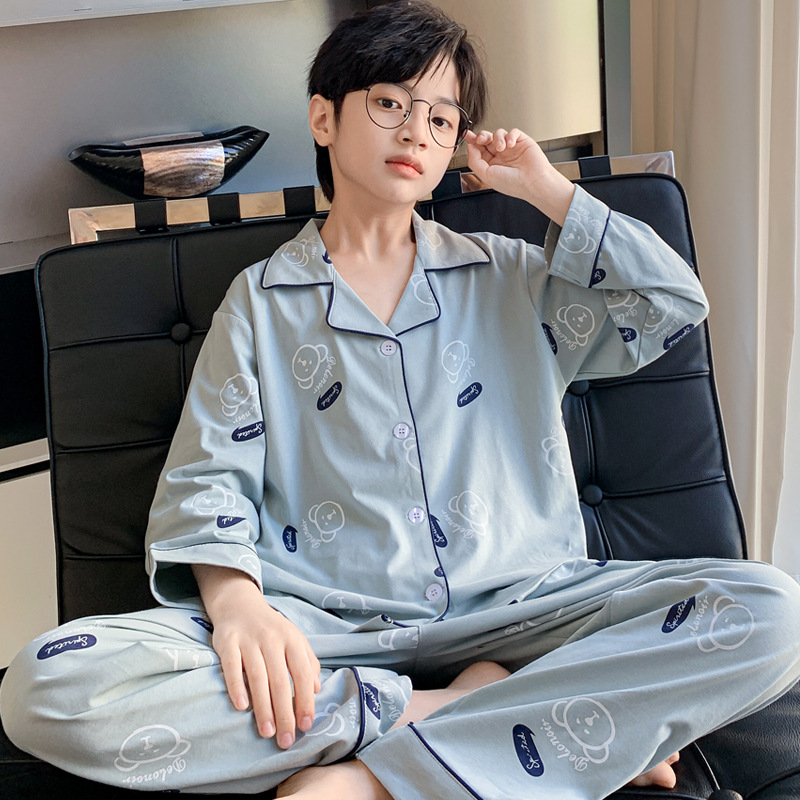 男の子用パジャマ 子供用純綿長袖 秋物 大きな子供向け 2025年新作 春秋 青少年 男の子用ホームウェア