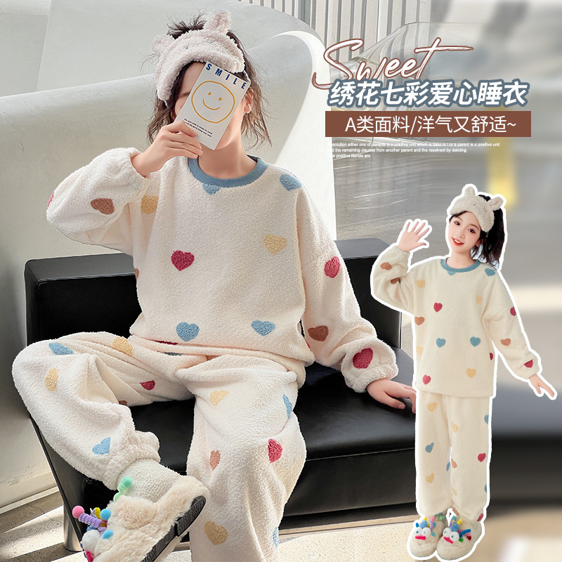2025秋冬子供用パジャマ女の子用コーラルベルベット厚手モデル中高生春秋フランネル女児ホームウェア