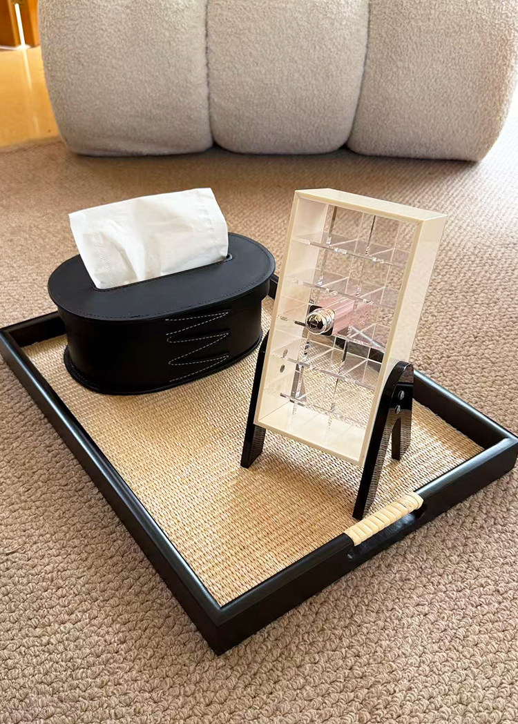 実木草編みトレー香薫トレー高級感装飾品置物家庭用品収納皿
