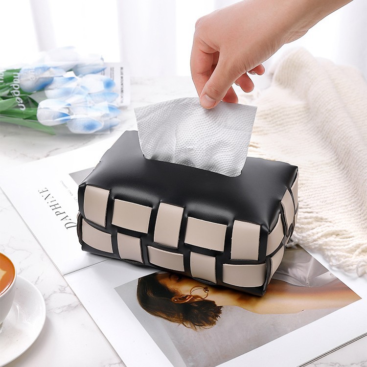 業務用編み革ティッシュボックス客間茶何高級軽贅沢紙箱高級感デスクトップティッシュ収納ケース