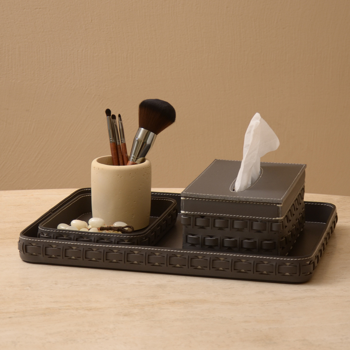 法式轻奢高级马鞍皮纸巾盒编织抽纸盒香薰托盘茶几摆件