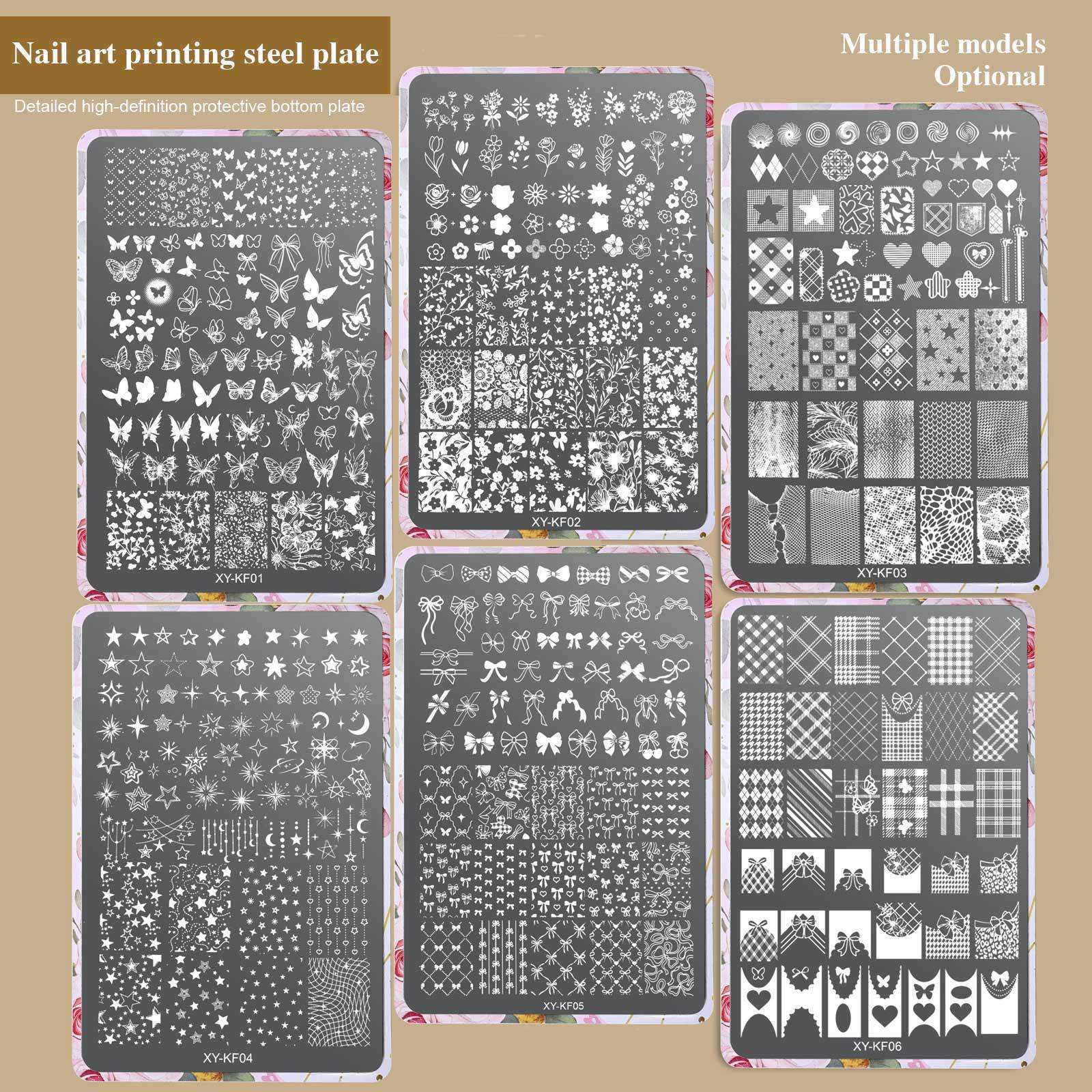 美甲印花钢板格纹法式线条印花钢板指甲装饰美甲工具转印图案工具