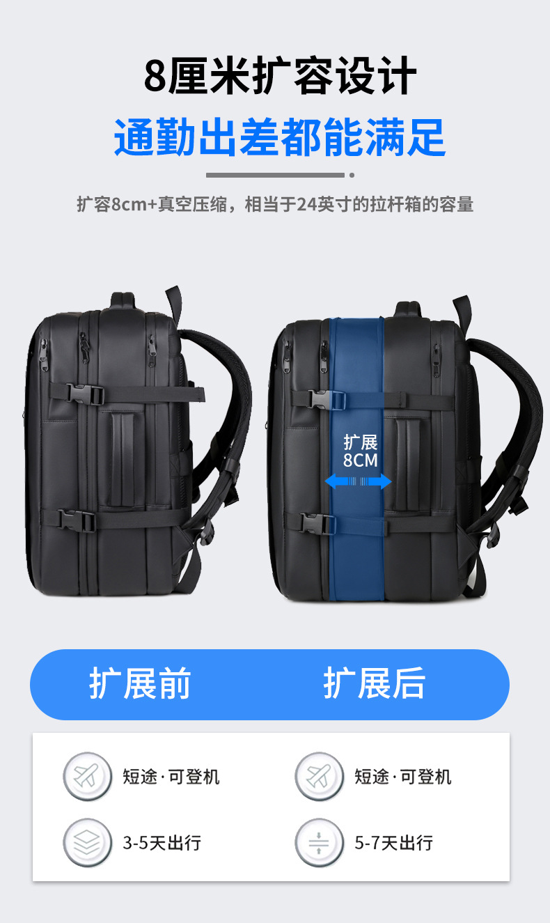 新款真空压缩双肩背包大容量多功能防泼水牛津布电脑包旅行包袋