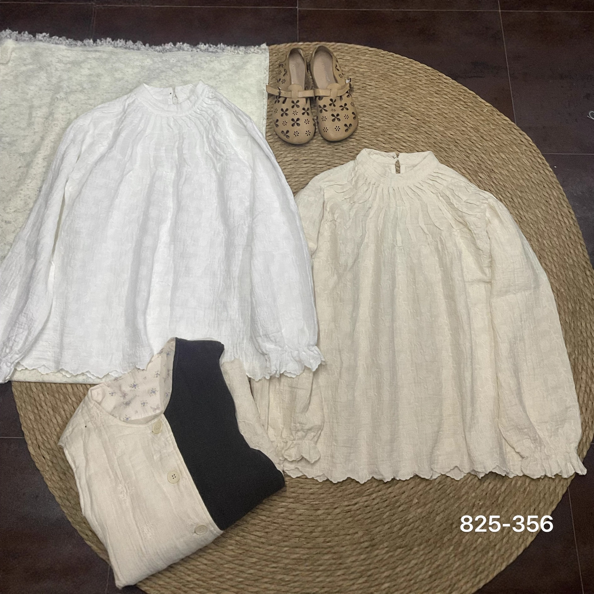 825356法式重工刺绣长袖衬衫2025秋季新款高级感泡泡袖娃娃衫上衣