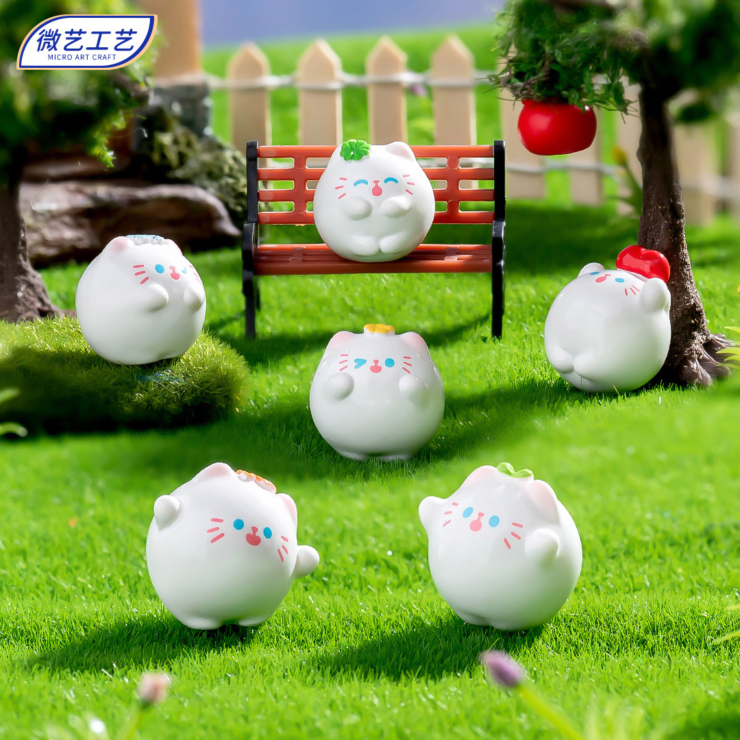 创意可爱呆萌团子小猫公仔树脂装饰品配件 娃屋diy桌面车载小摆件