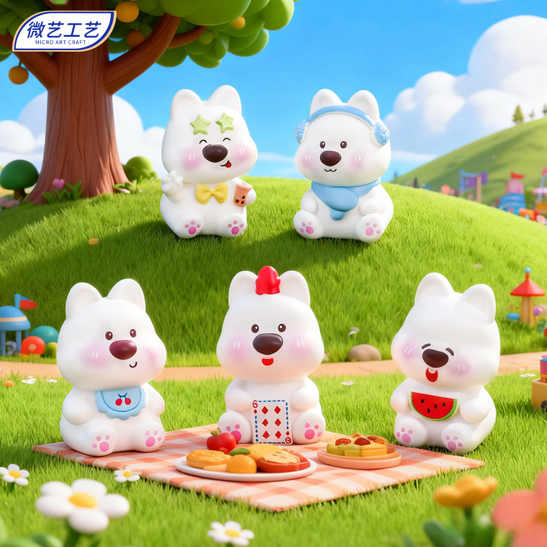 微景观西高地小狗公仔桌面车载小摆件盲盒卡通对对碰创意装饰配件