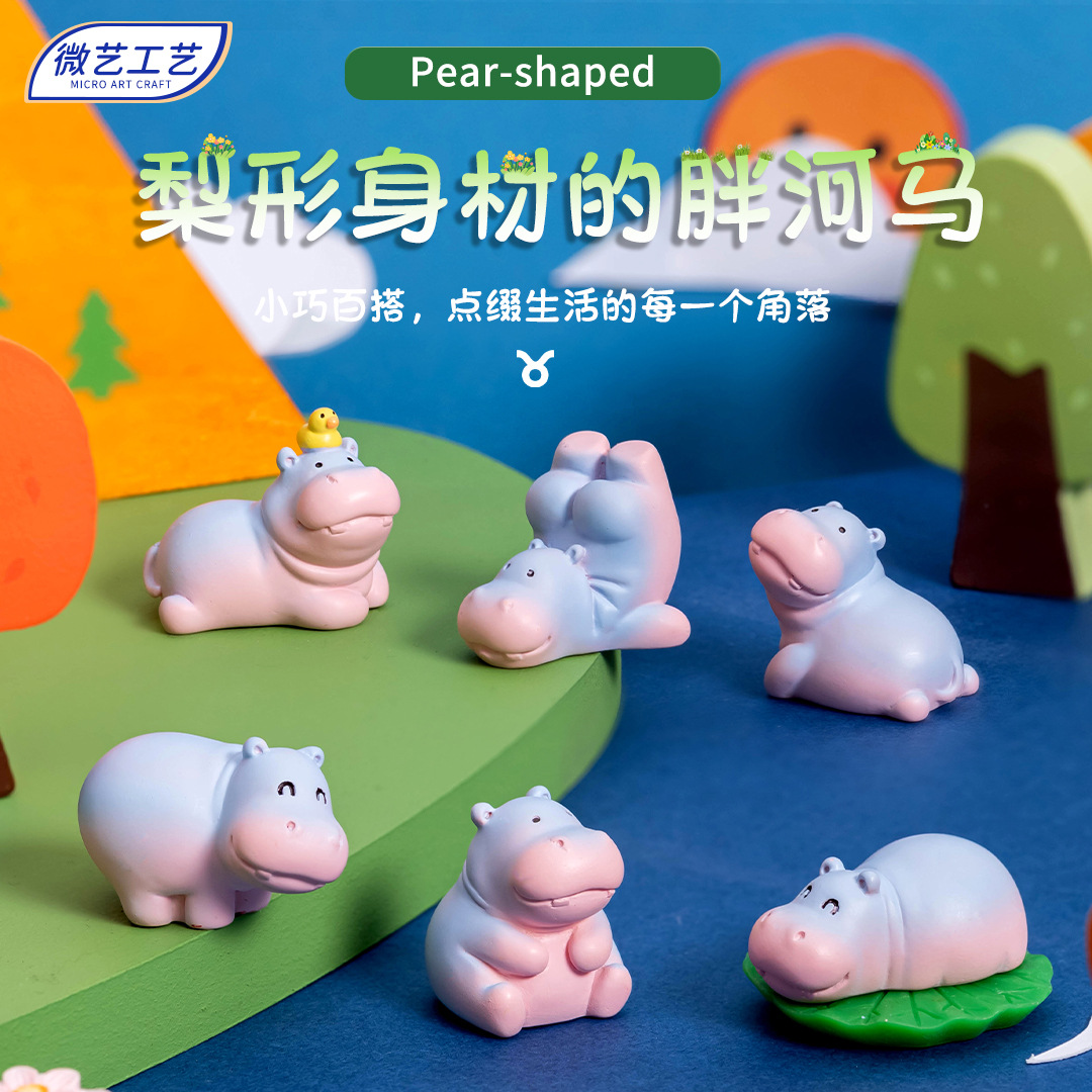 微景観の置物の漫画のかわいい小カバの公仔のdiyの装飾品の部品のデスクトップの自動車のミニの置物