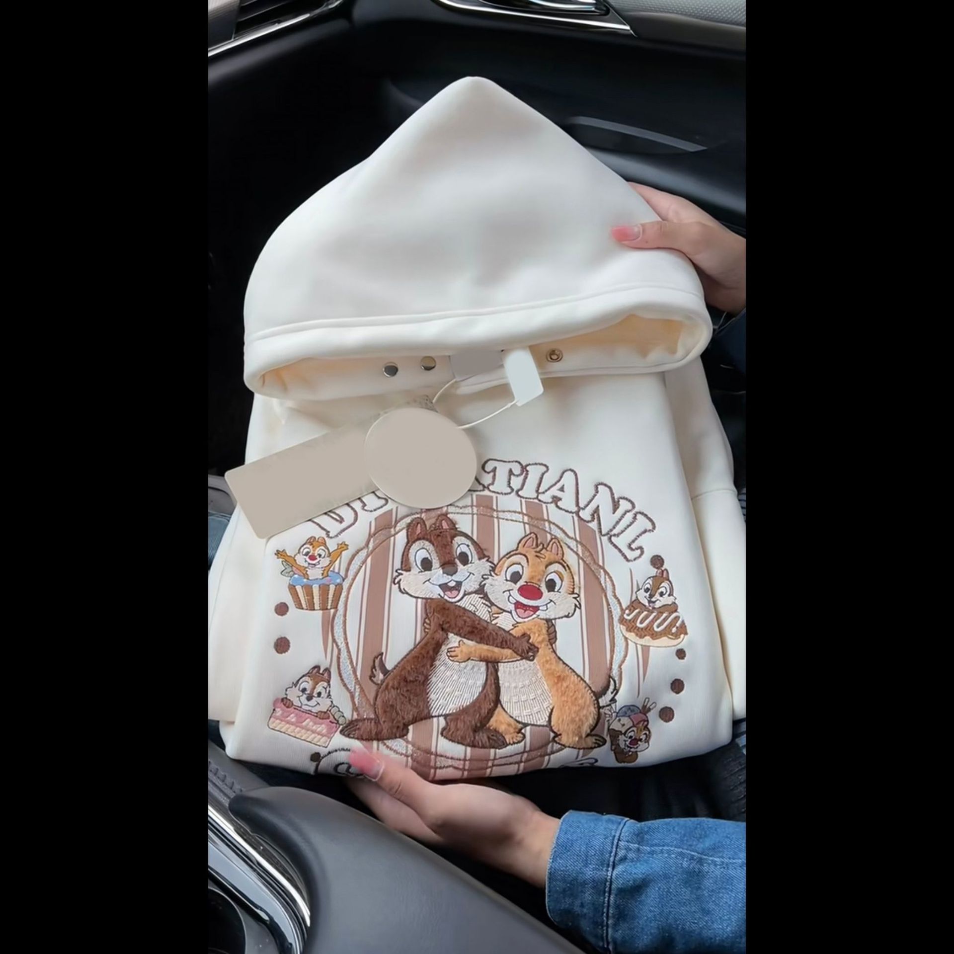 奶呼呼杏色减龄卡通刺绣连帽卫衣女秋冬宽松显瘦加绒加厚小众外套