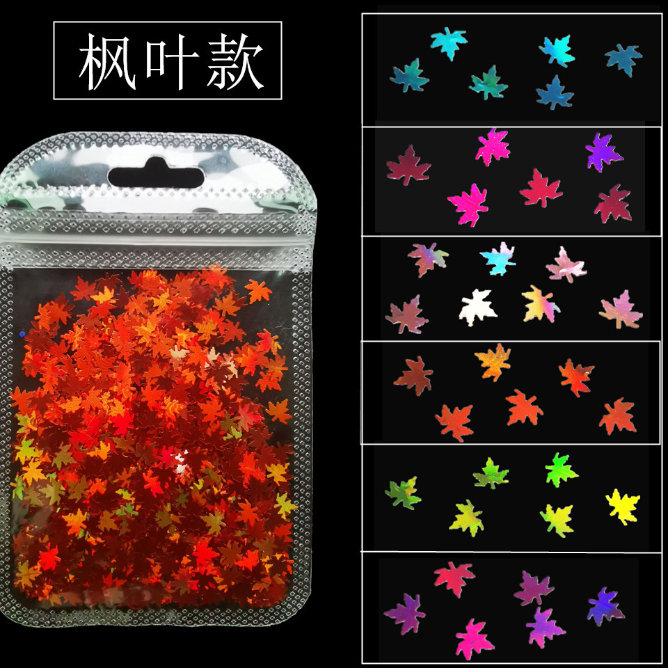 クロスボーダーの供給源の薄いタイプのレーザーカエデの葉のスパンネイルカエデの葉のスパンコールdiy携帯電話のケースのゴムの材料は包みます。