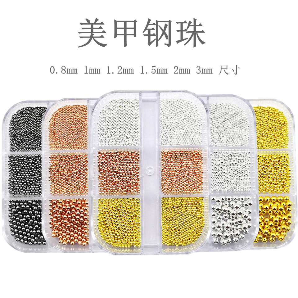 クロスボーダーネイルアクセサリーのスチールボール6サイズのサイズに金メッキされたシルバービーズのアクセサリーキャビアの爪の装飾