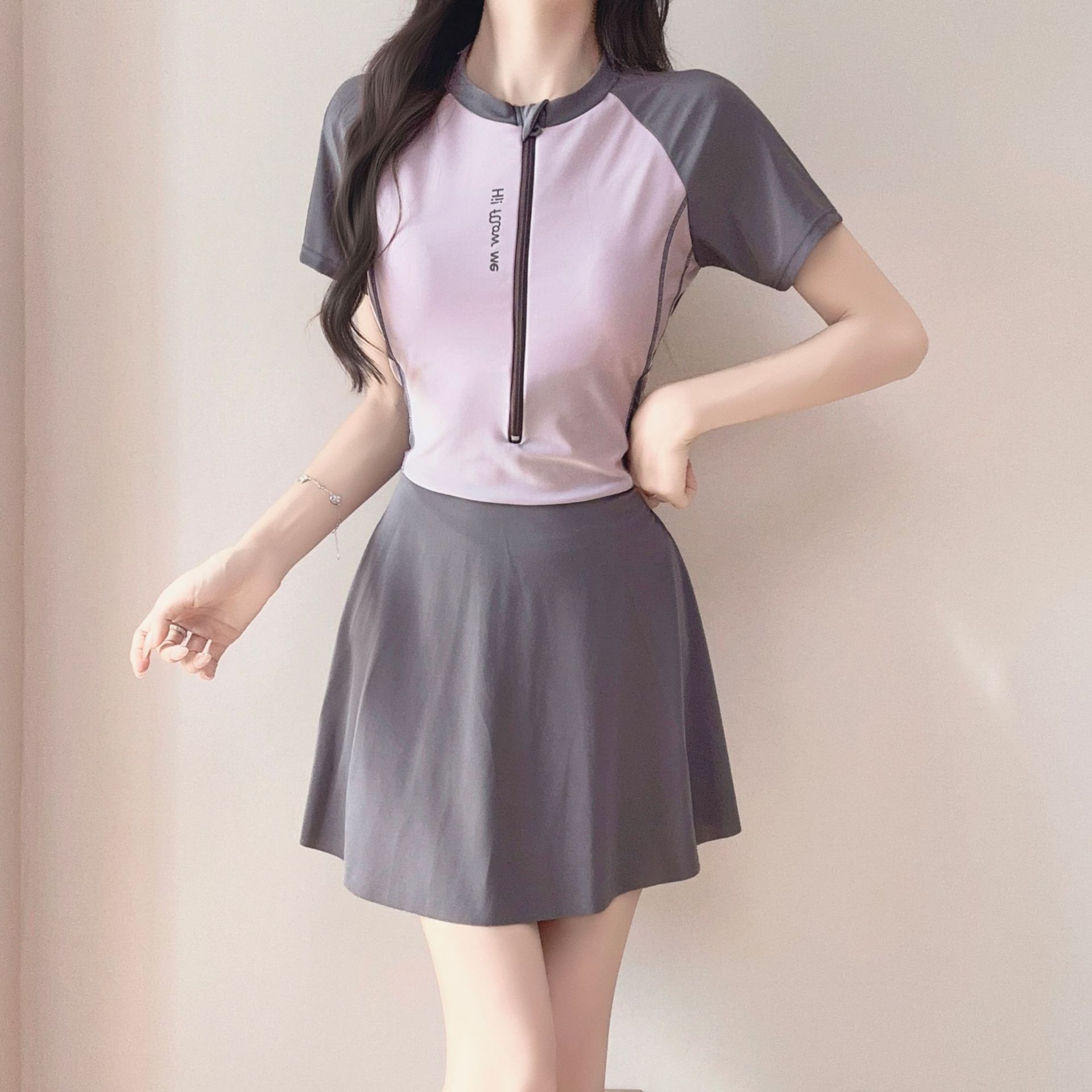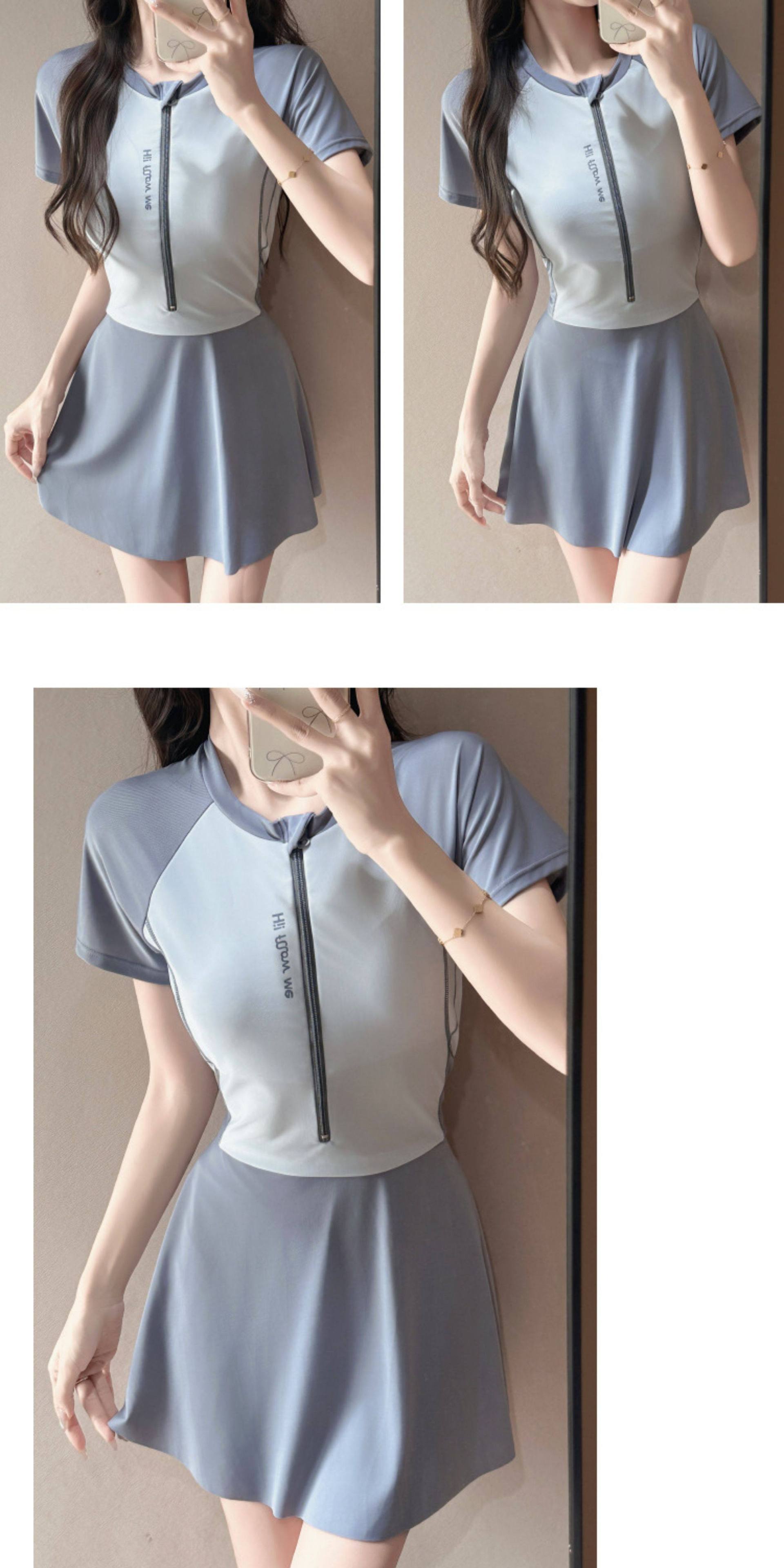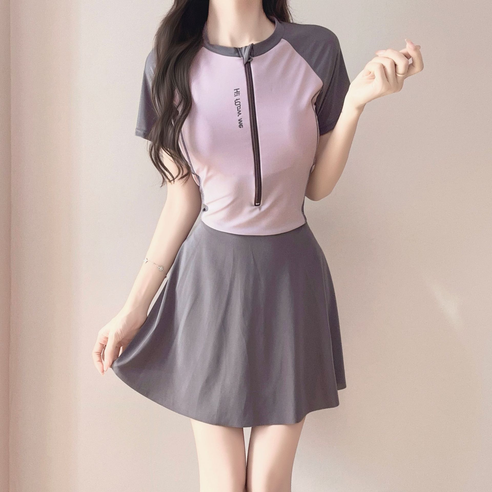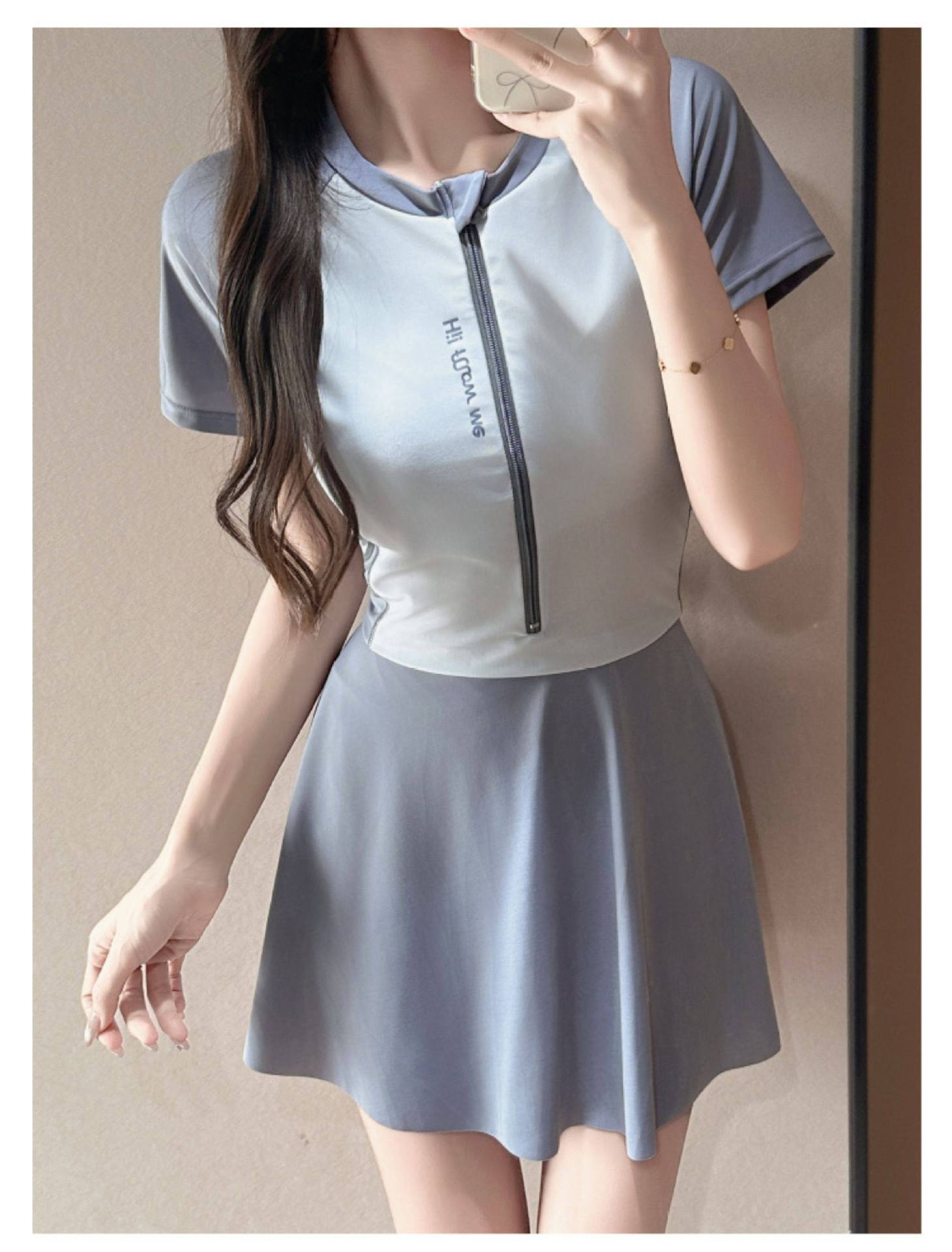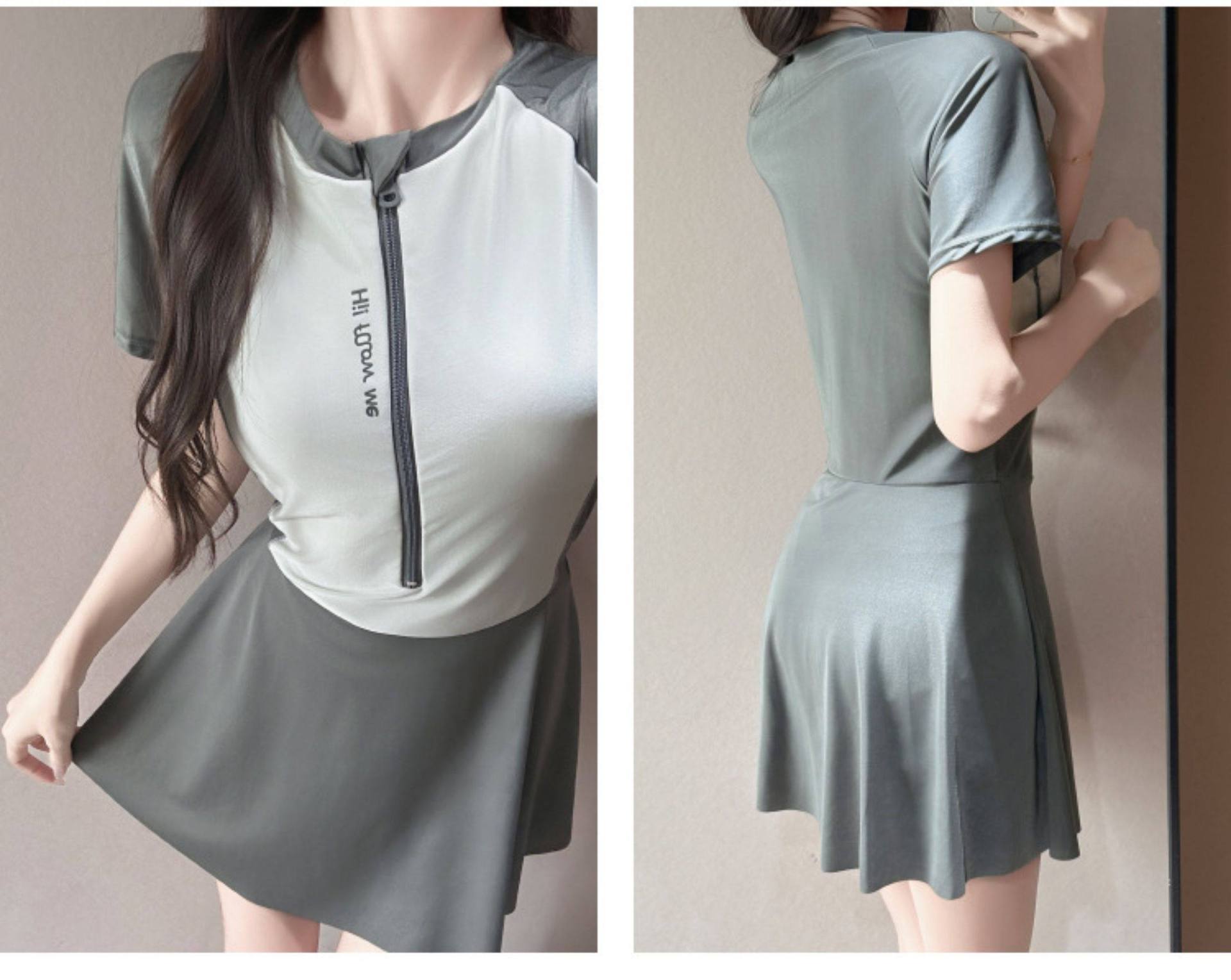 2026年新作ポリエステル製スポーツ用ツーピース水着、ファッショナブルなテニス風韓国学生風スカート型平角水着