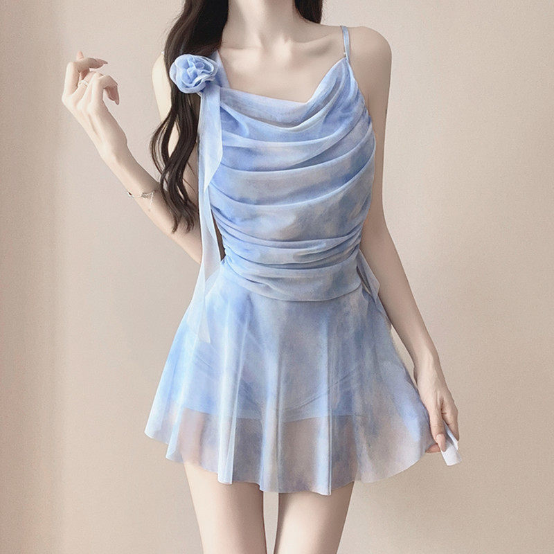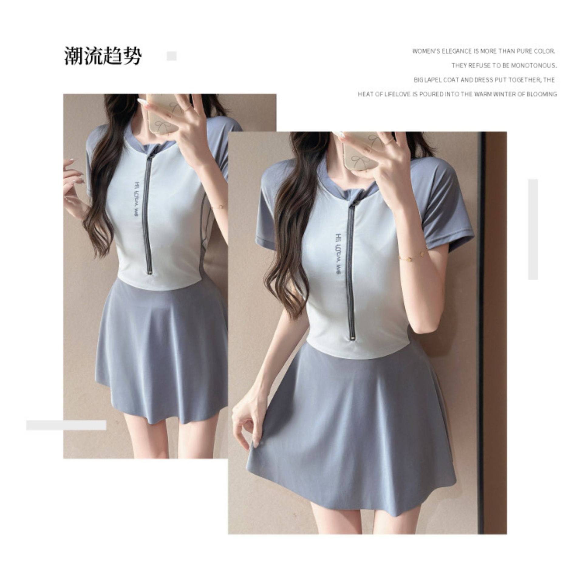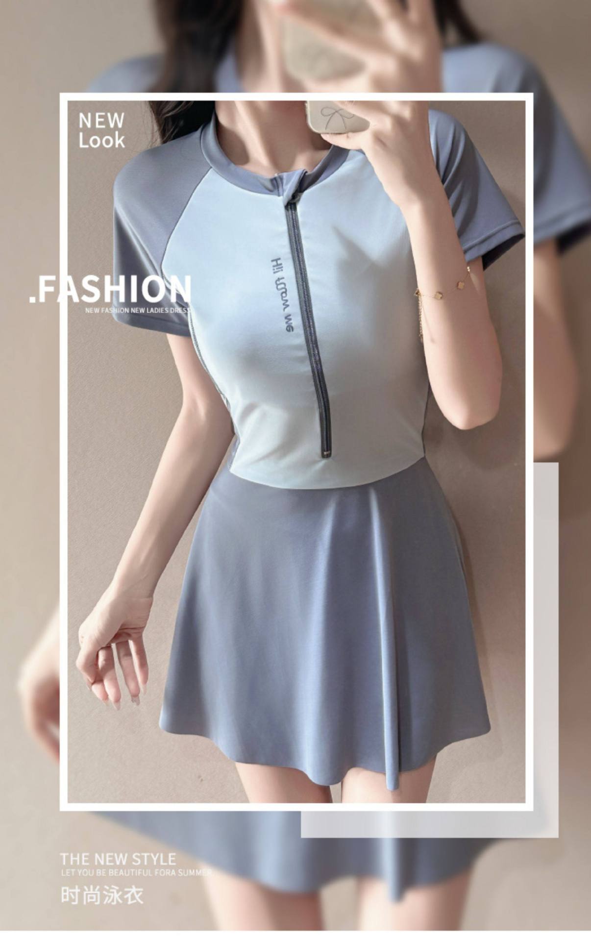 跨境连体泳衣时尚运动遮肉显瘦2026新款保守泡温泉感裙式泳装