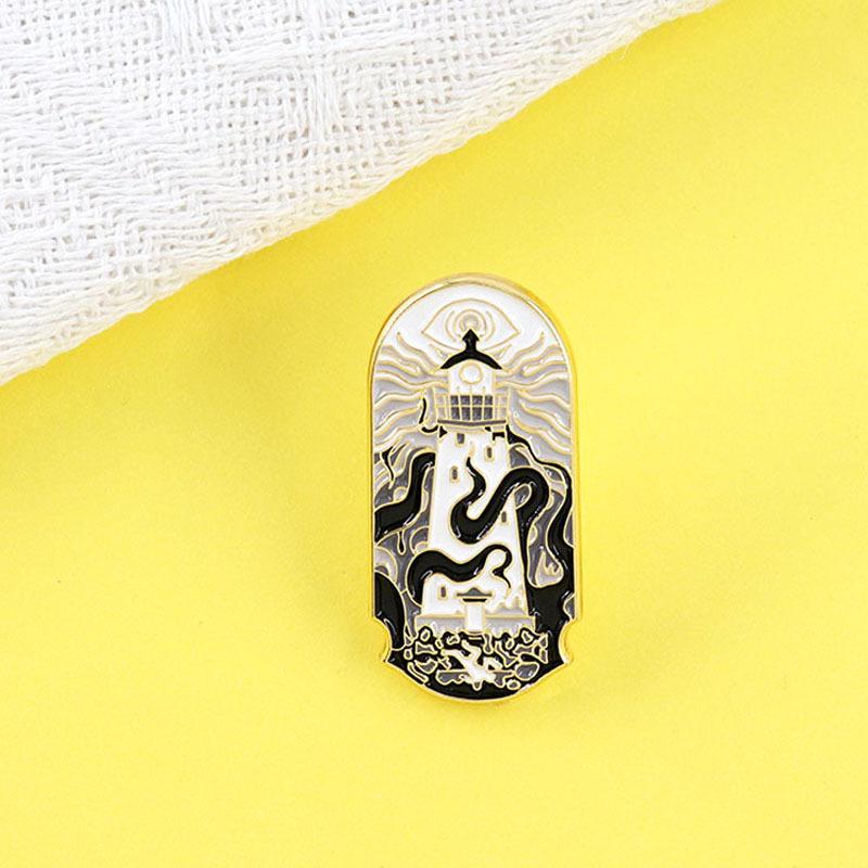 灯台と海の怪物バッジタコの触手が巻かれた灯台エナメルピンファッションパーソナライズされた装飾