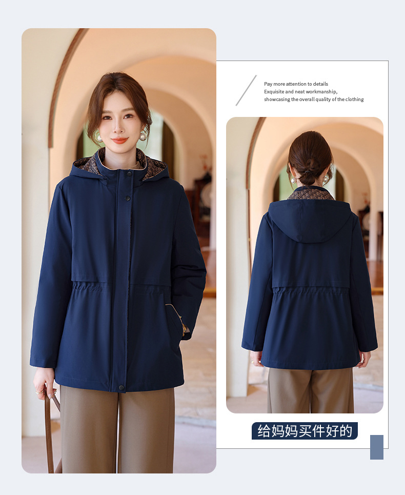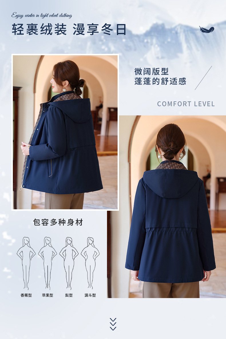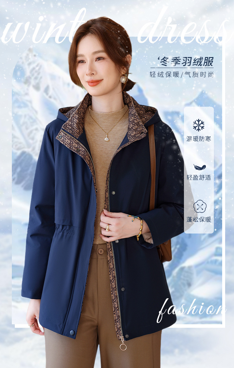 中老年妈妈装中长款风衣款90绒羽绒服大码洋气带帽保暖外套上衣