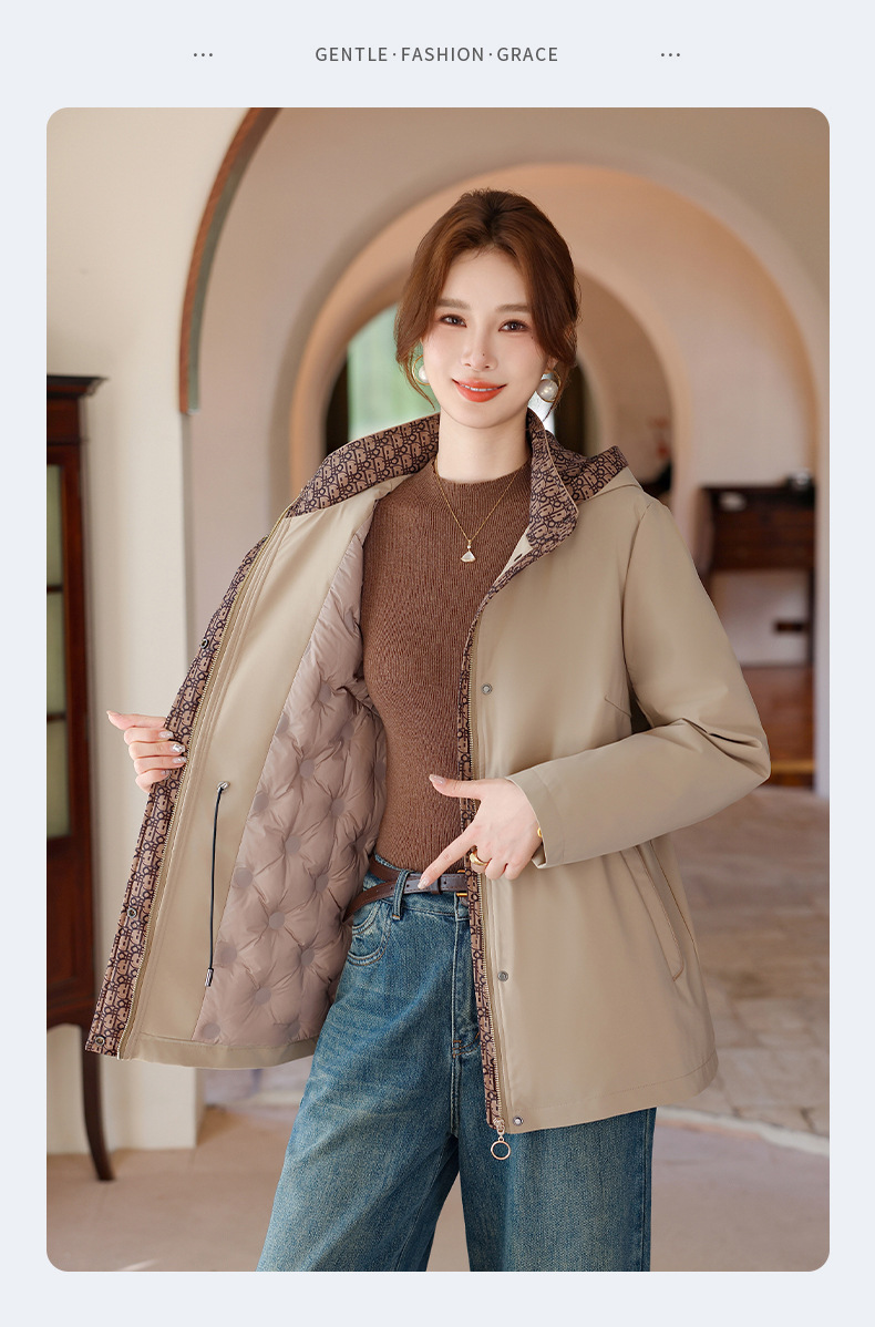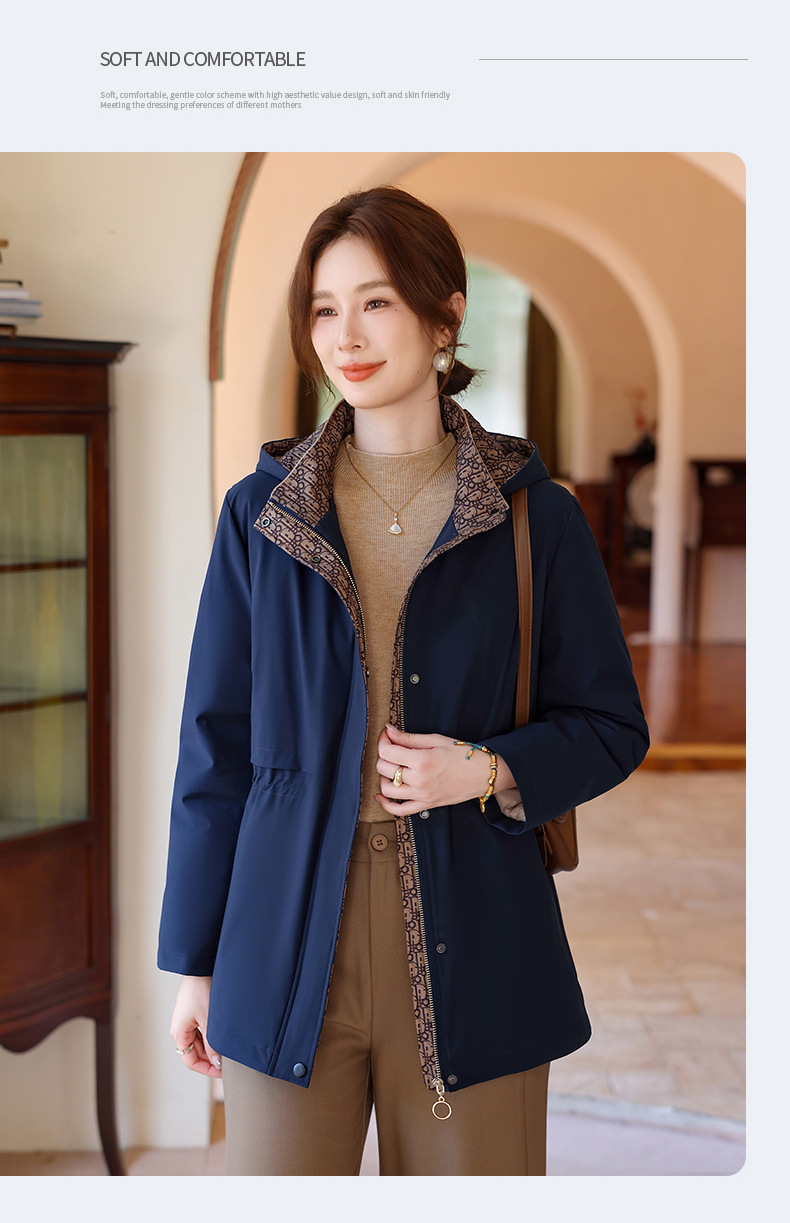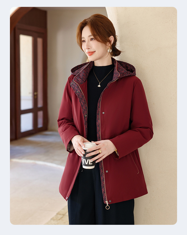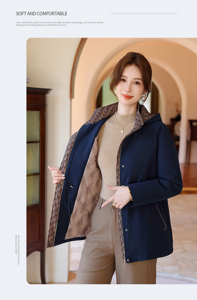 中老年妈妈装中长款风衣款90绒羽绒服大码洋气带帽保暖外套上衣
