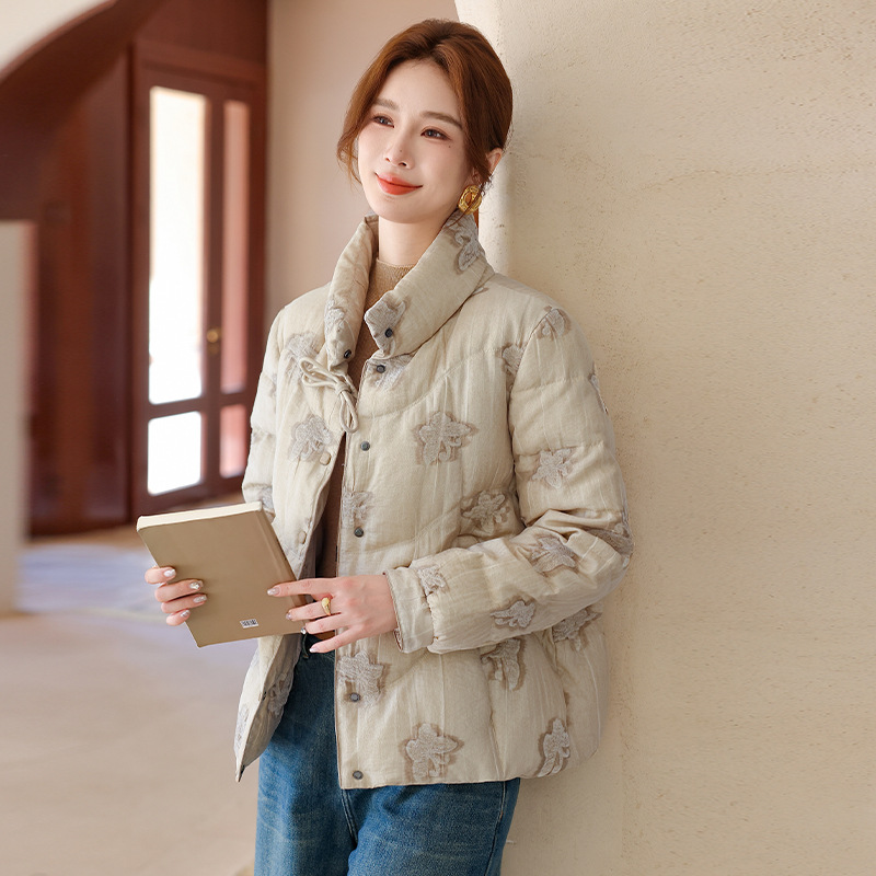 2024中高年ダウンジャケット短い秋冬上着ママコート綿服刺繍洋気90白鴨パイル