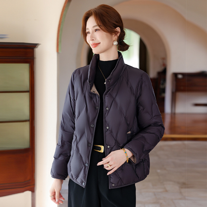 2025妈妈装短款羽绒服女时尚保暖90白鸭绒外套上衣奶奶装素色洋气