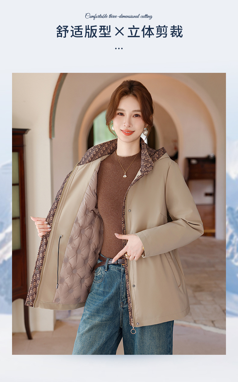 中老年妈妈装短款90绒白鸭绒羽绒服时尚高端连帽冬季保暖外套跨境