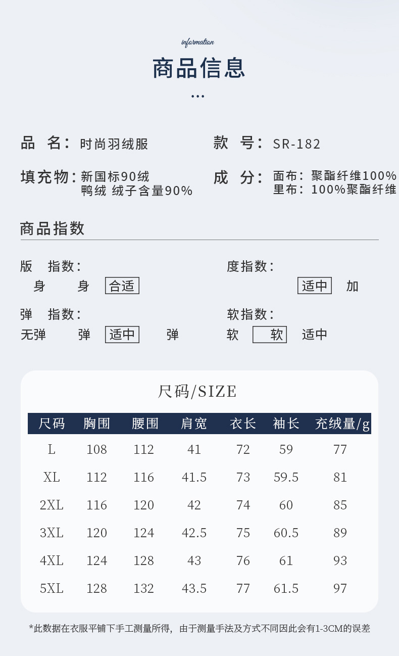 尺码 L(建议80-100斤),XL(建议100-115斤),XXL(建议115-125斤),XXXL(建议125-135斤),4XL(建议135-145斤),5XL(建议145-160斤),结合身高体重,请咨询客服