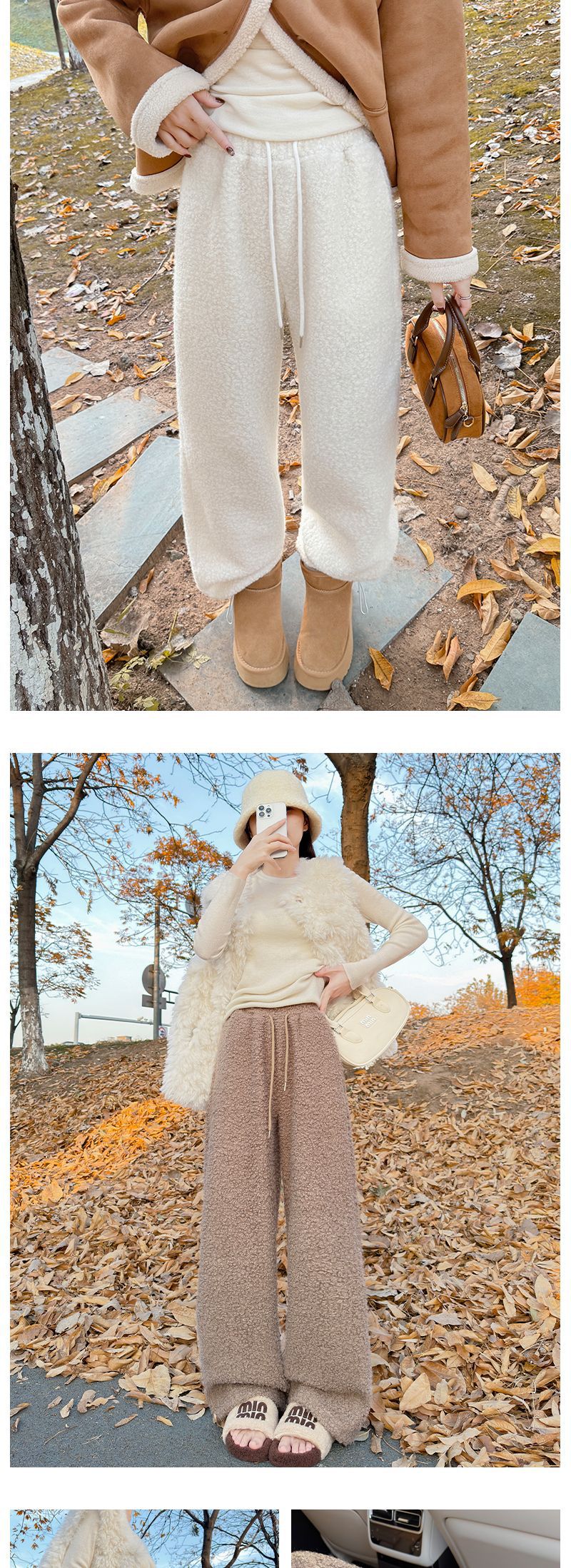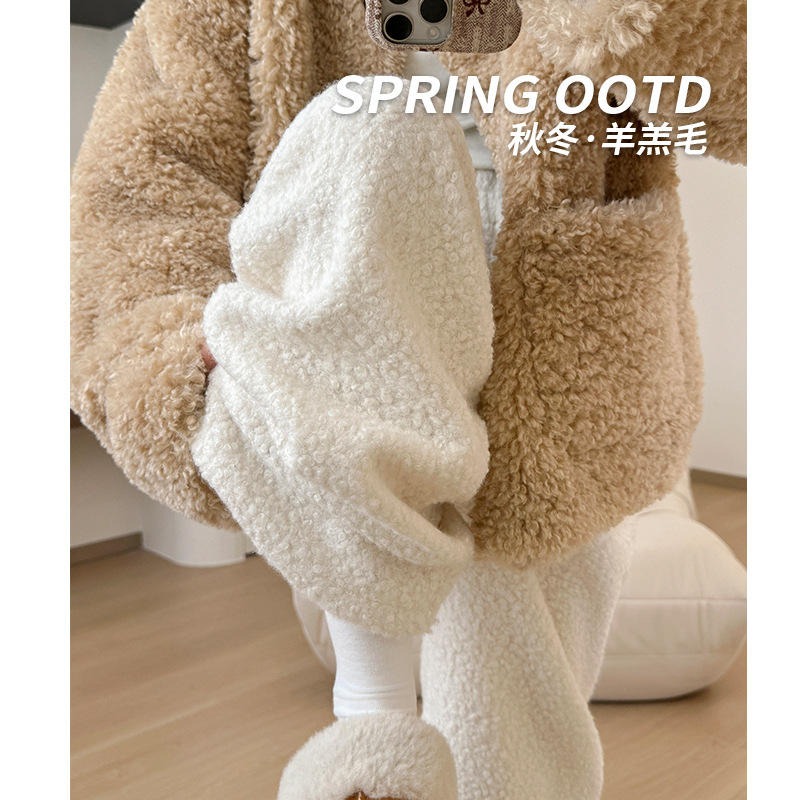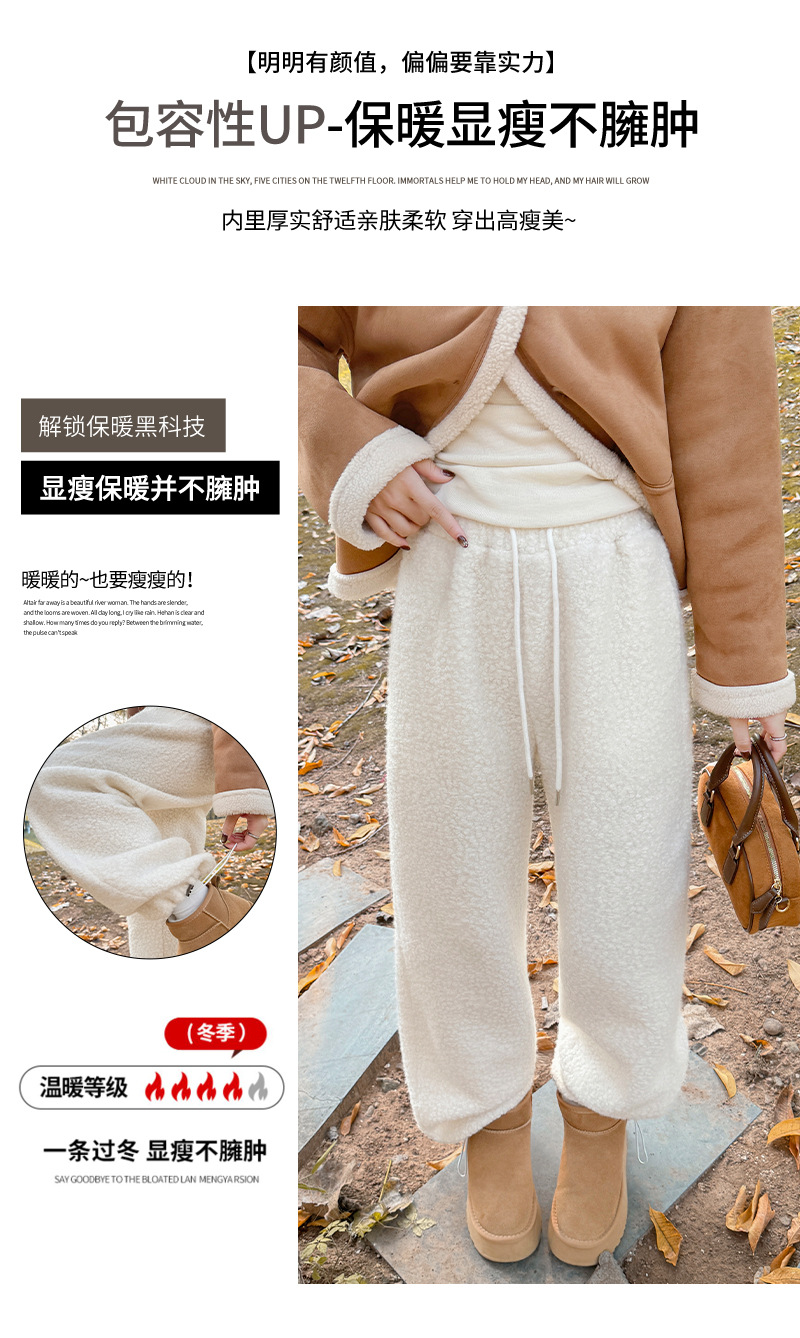 白色羊羔绒运动裤女秋冬新款休闲显瘦直筒裤卫裤小个子加厚阔腿裤
