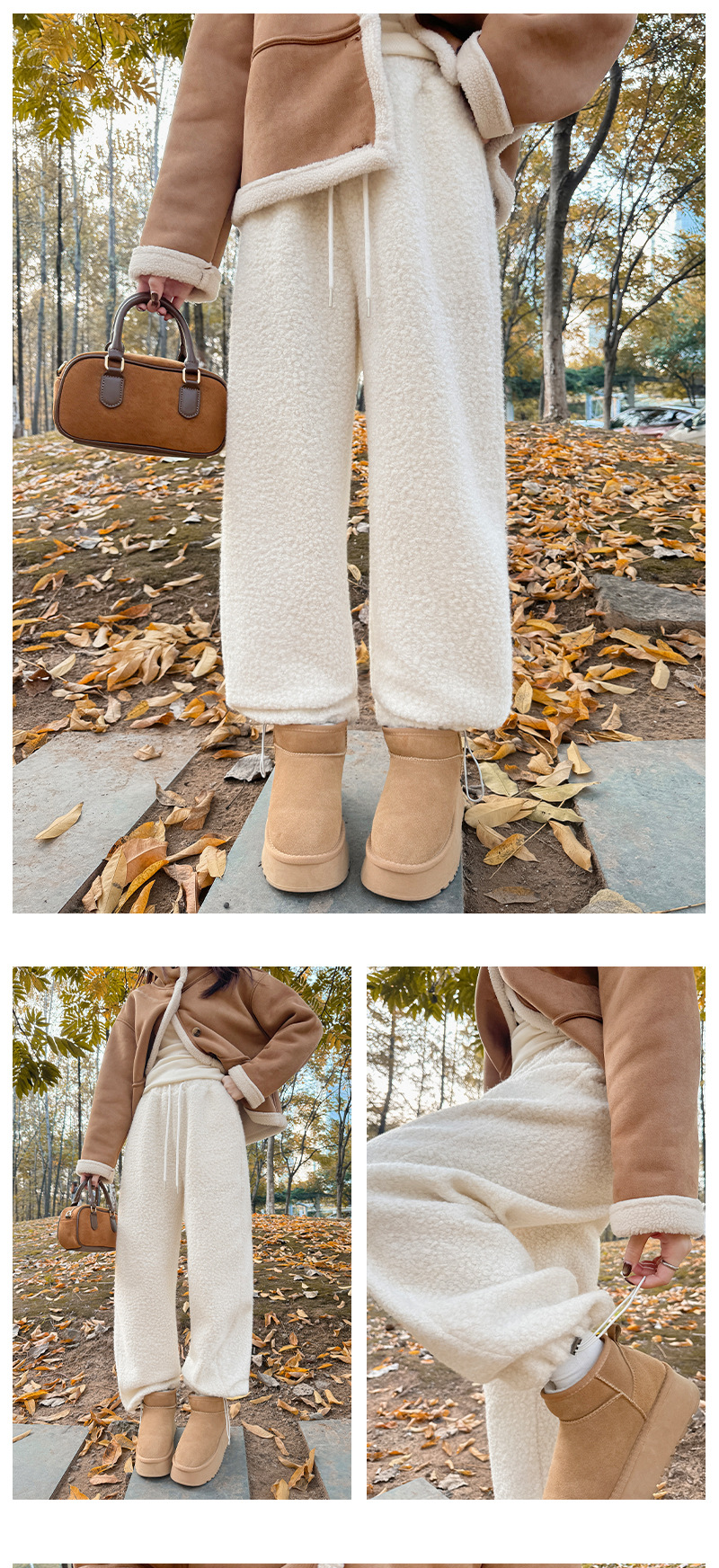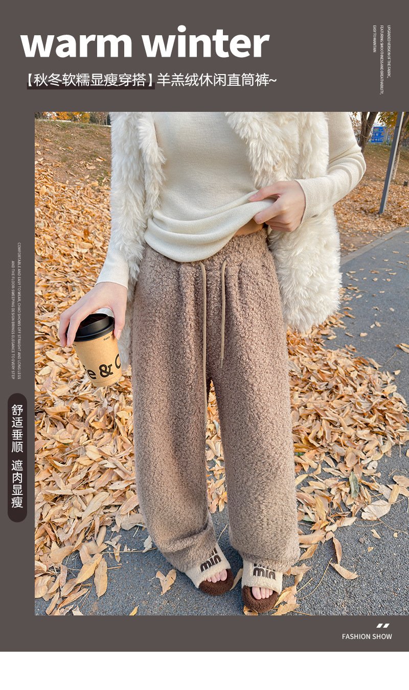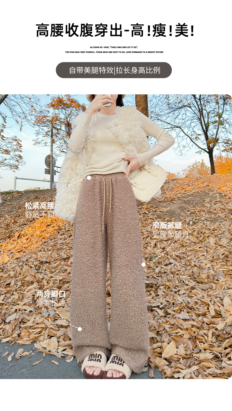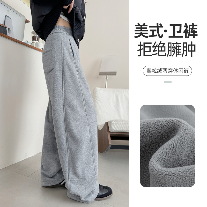 双面羊羔绒加绒裤子女款冬季新款宽松显瘦卫裤休闲直筒窄版阔腿裤