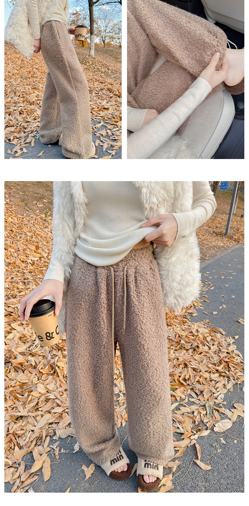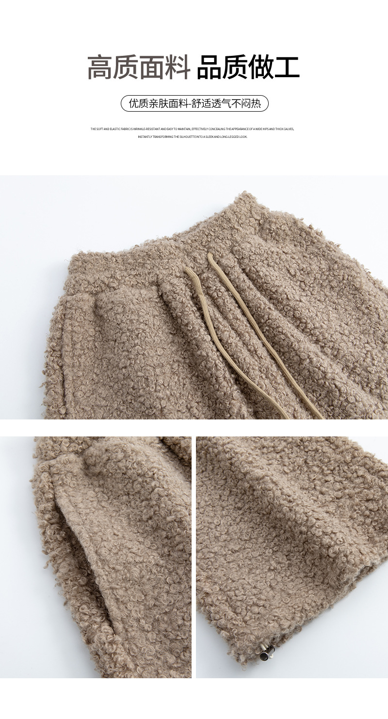 子羊の毛の広い足のズボンの女性の服装のズボンの子供の秋冬の新型はやせている直筒の衛のズボンの高い腰の怠惰なレジャーのスポーツのズボンを現します。
