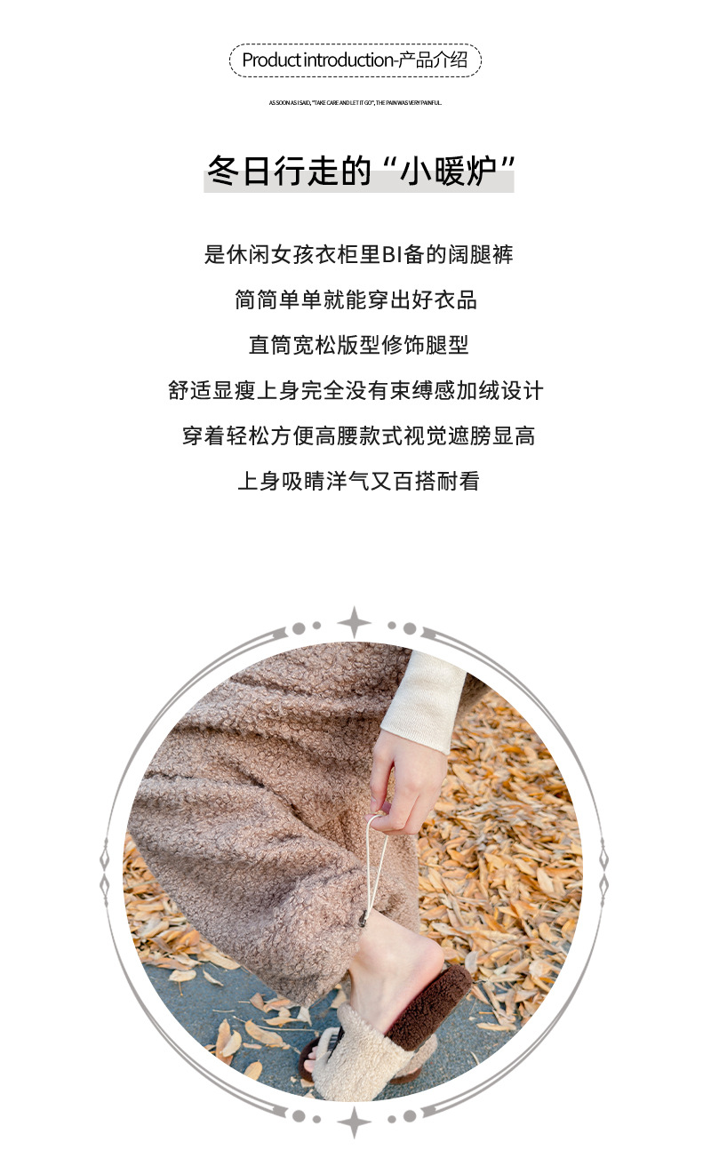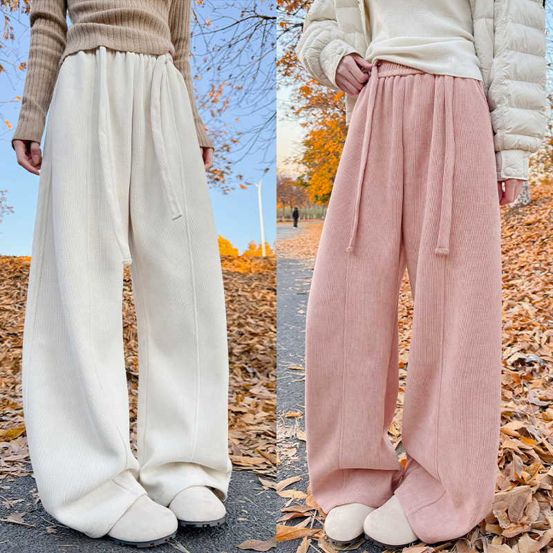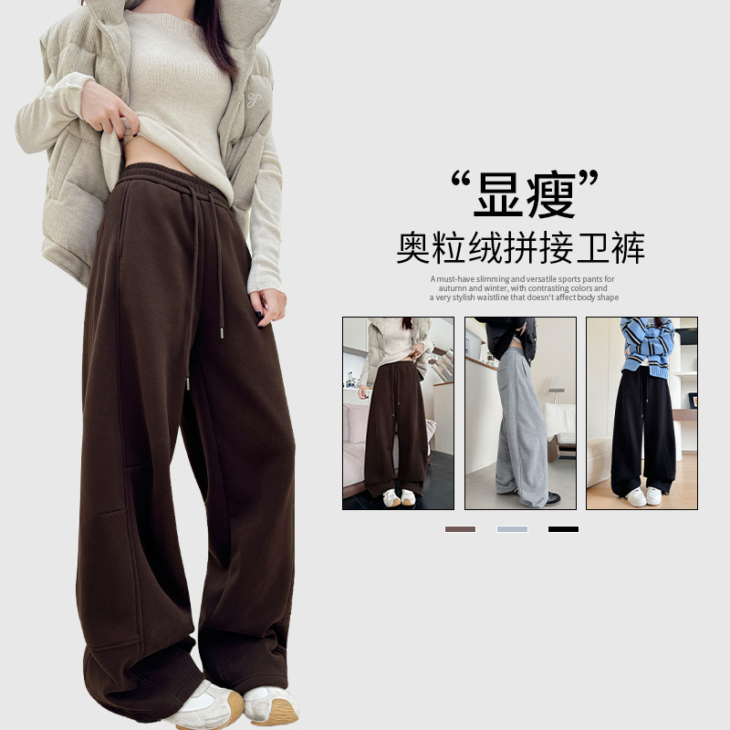 水貂绒加绒阔腿裤女秋冬新款宽松显瘦高腰直筒裤休闲慵懒风糯米裤