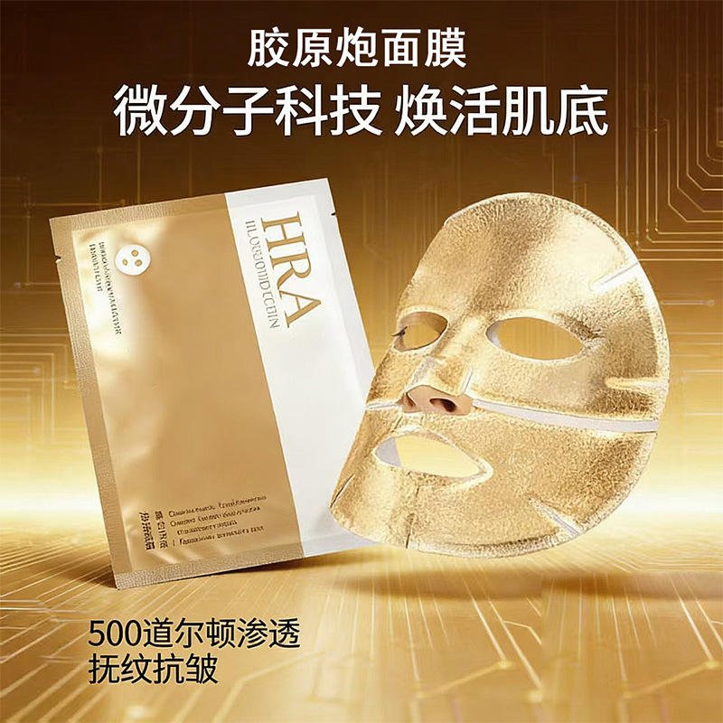 抖音同款HRA黄金胶原炮面膜抚纹补水保湿抗皱紧致光感面膜厂家