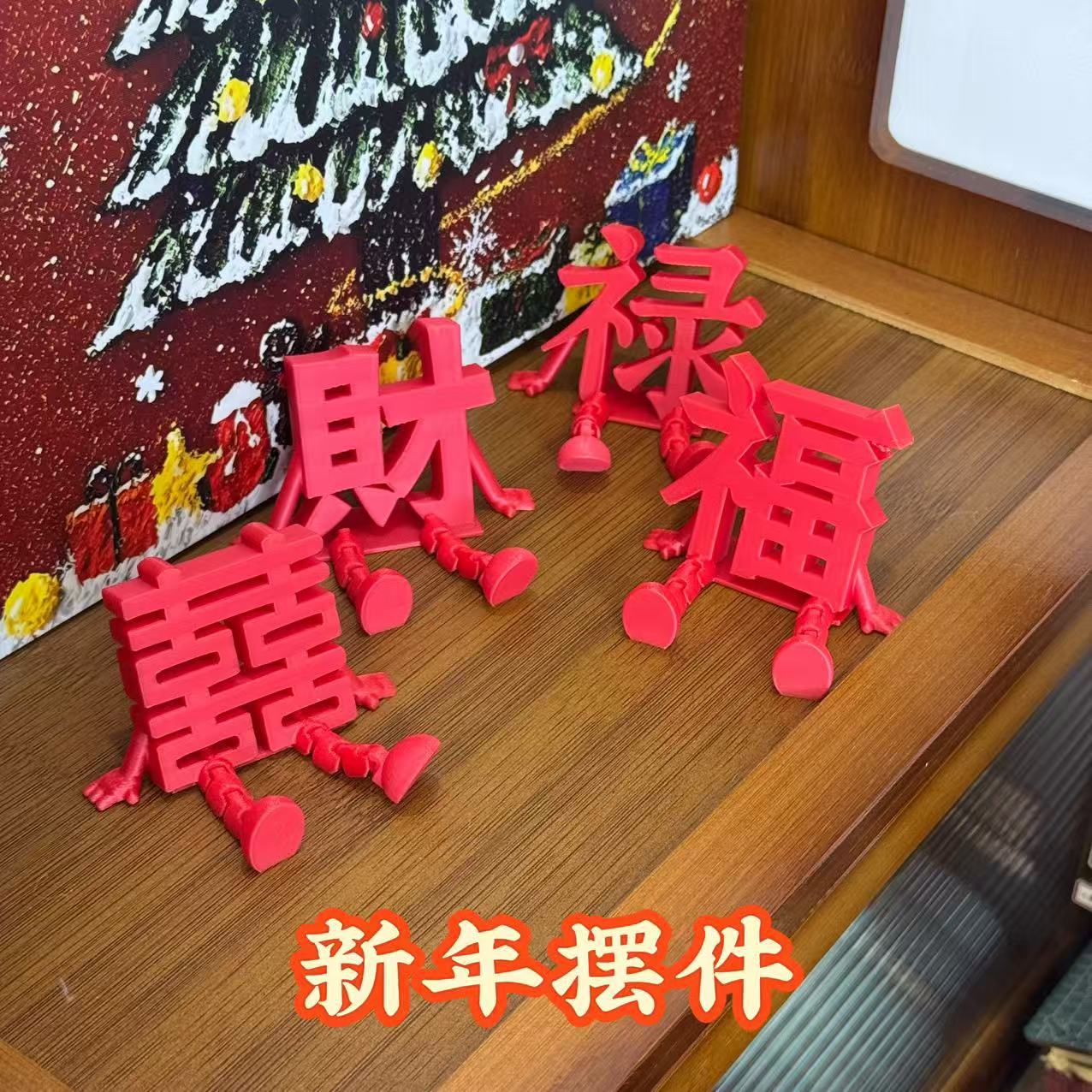 2026年立体桌面摆件双喜福字关节可动小人马年福新年礼物家庭装饰