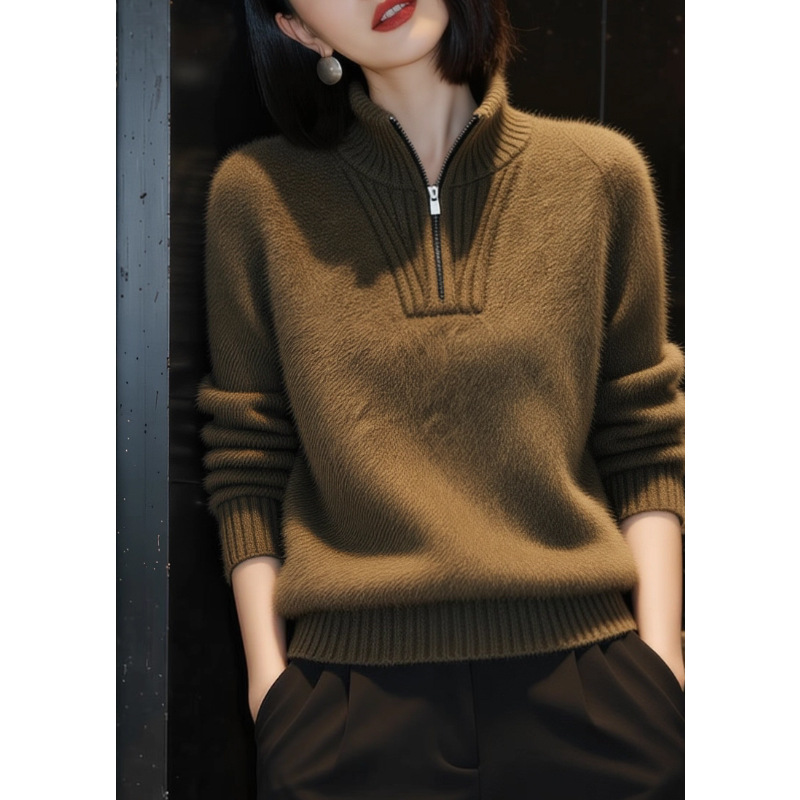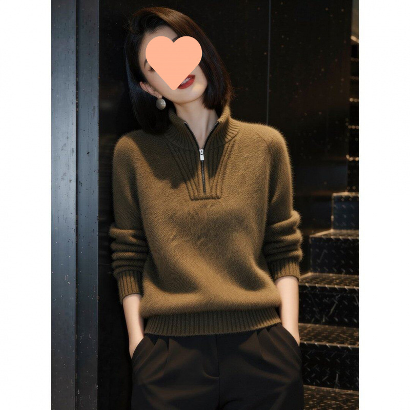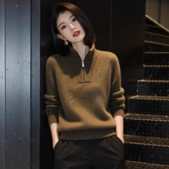 2025冬季新款时尚半拉链翻领纯色针织衫毛衣通勤风显瘦长袖上衣潮