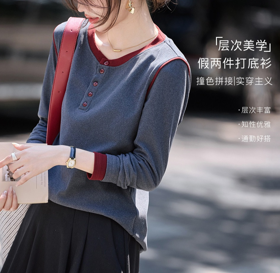 百搭拼色绒感2025年秋冬季新款高级感保暖细腻舒适显瘦内搭打底衫