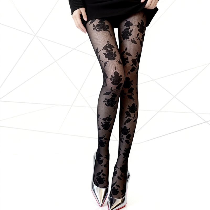 复古蔷薇玫瑰花朵防勾丝奶黑色连裤袜甜美jk刺绣法式丝袜女打底袜