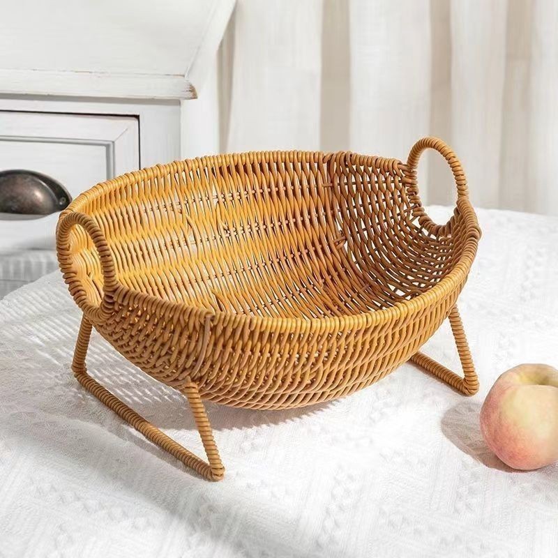 籐バスケット籐編みフルーツバスケットパンバスケット商超陳列展示バスケットテーブルテーブルスナック収納フレームプラスチック編みバスケット