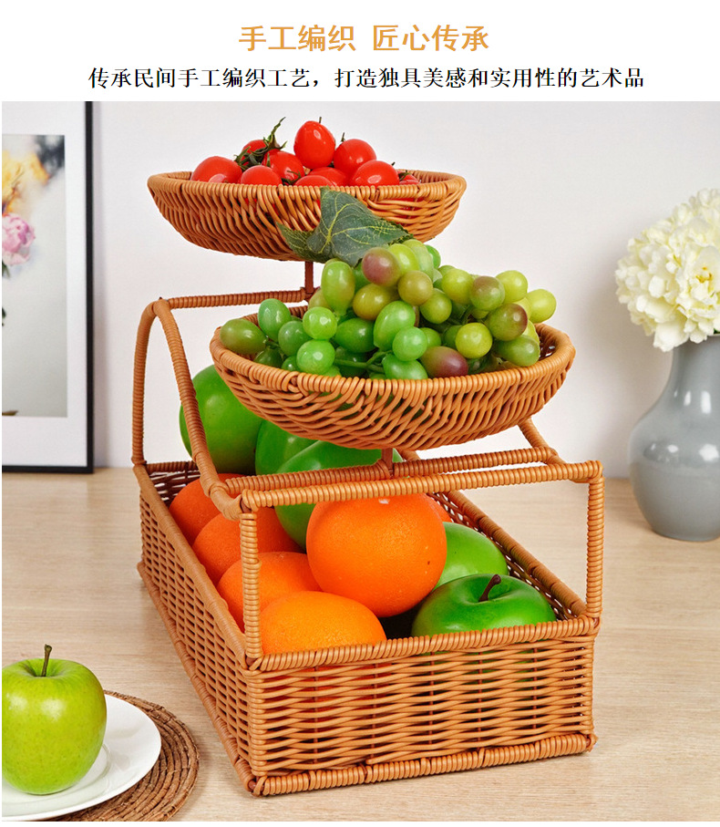 多层水果手工编织篮餐厅家居三层仿藤编篮干果零食藤编盘点心篮子