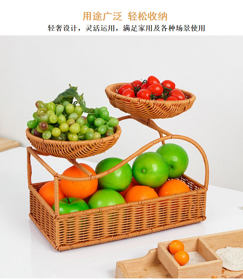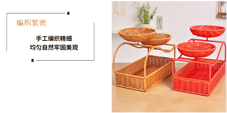 创意多层果盘面包篮双层仿藤编织客厅点心篮干果篮野餐篮水果篮