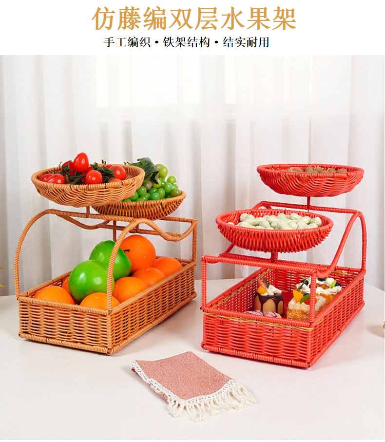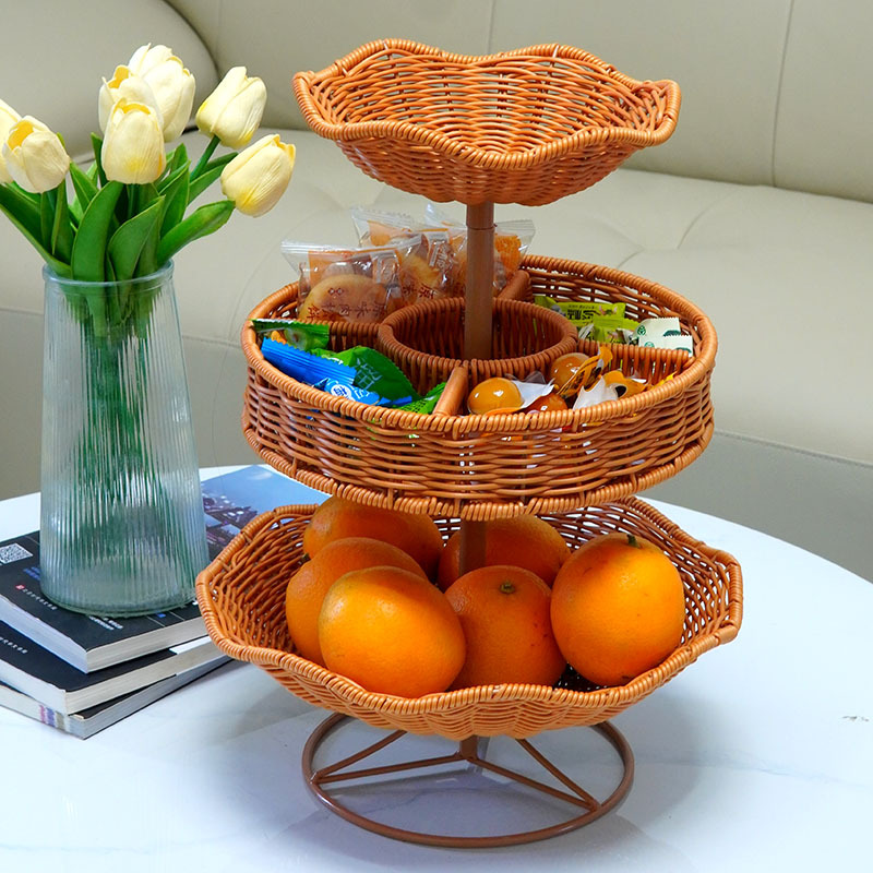 模造藤新中国式クリエイティブバスケット多層果物皿家庭用客間ドライフルーツ菓子トレイ間食収納棚